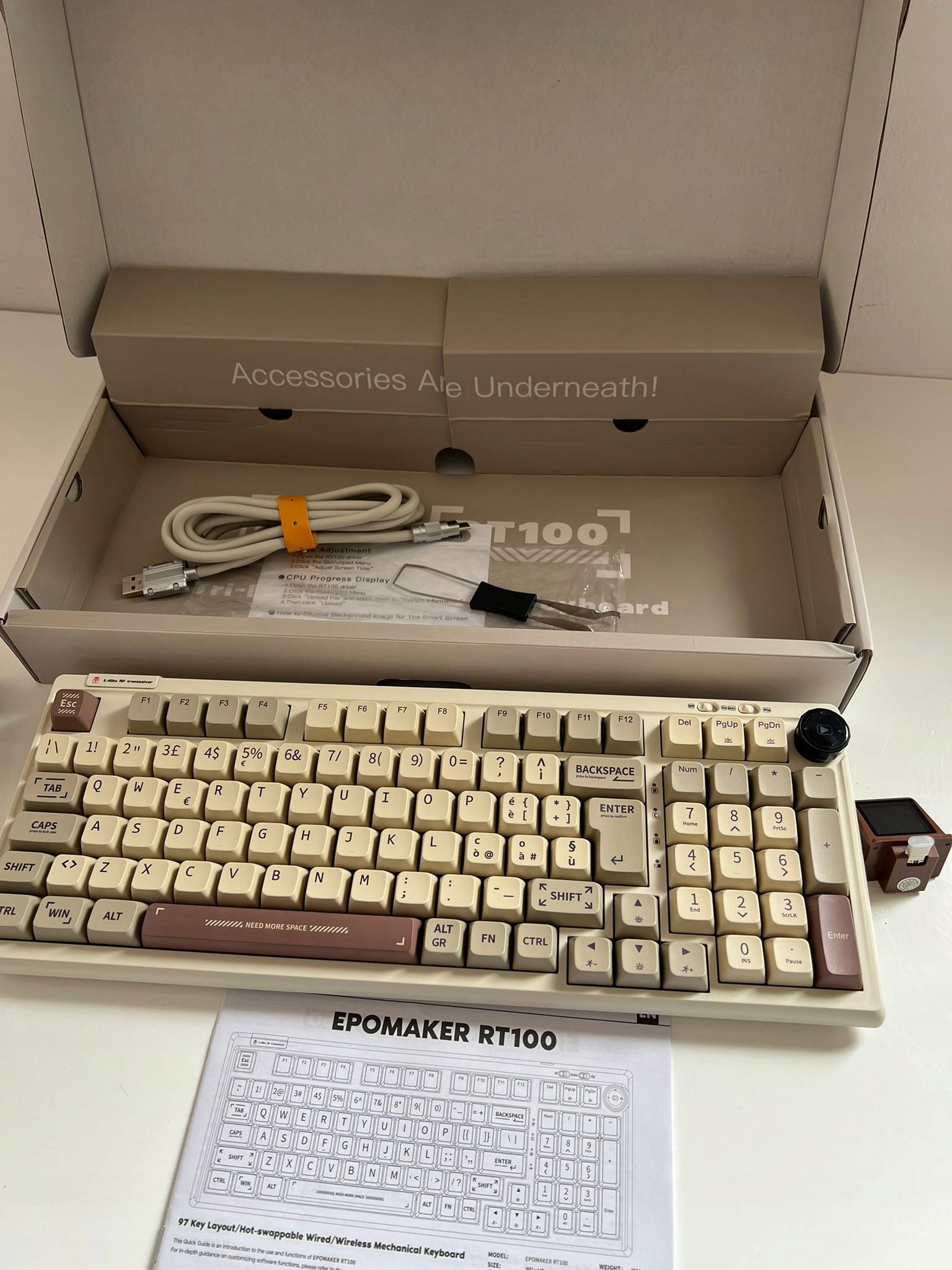 EPOMAKER - RT100 Bezprzewodowa Klawiatura Mechaniczna Retro 95% - Pokrętło i Mini Wyświetlacz