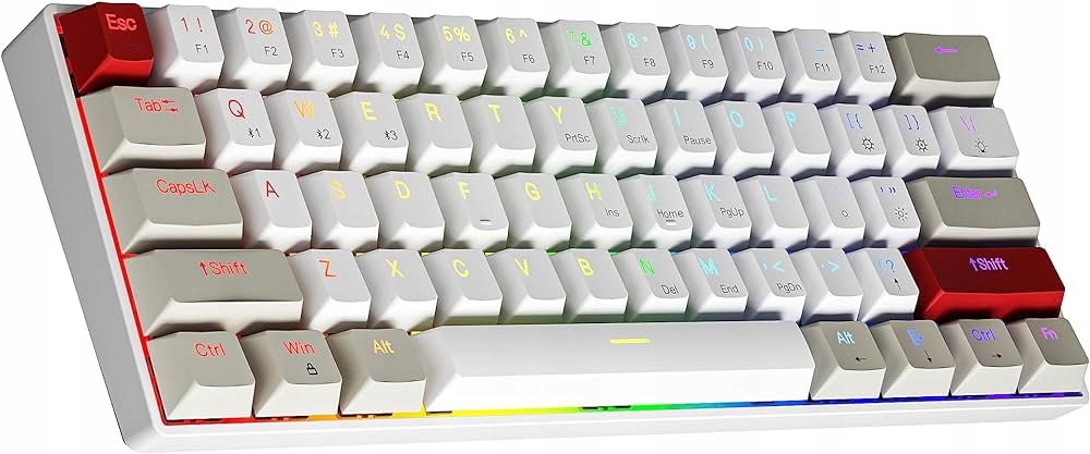 60% układ US i solidna konstrukcja pozwala zaoszczędzić więcej miejsca na stole. Dostępna jest funkcja multimedialna, 60% wielkości normalnej klawiatury mechanicznej, ale może spełnić większość wymagań związanych z pracą i grami.