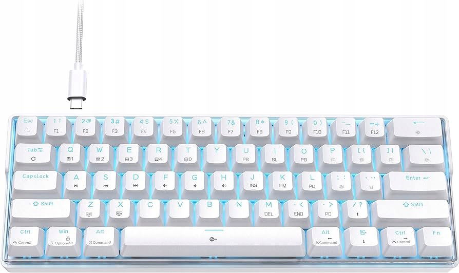 • KEMOVE K61SE mechaniczna klawiatura do gier, ultra kompaktowa, 60% QWERTY układ US, Anti-Ghosting, nasadki na klawisze PBT, USB Plug & Play, przewodowa klawiatura
