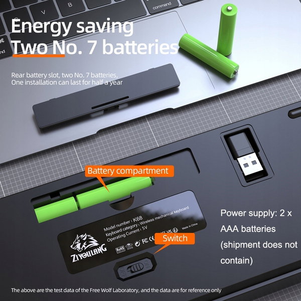 【Odbiornik 2 w 1 i inteligentne automatyczne uśpienie】 Ta bezprzewodowa klawiatura jest wyposażona w odbiornik 2 w 1, który działa na urządzeniach typu C lub USB A, obsługując komputery PC, laptopy, tablety, telefony itp. Sterownik nie jest wymagany, podłącz i graj. Klawiatura automatycznie przechodzi w stan hibernacji po 30 minutach bezczynności i można ją obudzić naciskając dowolny klawisz. (Klawiatura wykorzystuje dwie baterie AAA, baterie nie są dołączone)