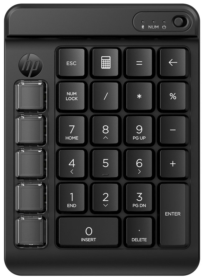 Zadbaj o to, aby klawiatura dodatkowa obsługiwała więcej niż tylko liczby. Bezprzewodowa, programowalna klawiatura dodatkowa HP 430 jest w pełni konfigurowalna1, zapewniając Ci pełną kontrolę. Poza standardowym układem klawiatury numerycznej obejmuje kolumnę pięciu pustych klawiszy, które możesz skonfigurować według potrzeb. W rzeczywistości ta klawiatura dodatkowa obejmuje dziewięć programowalnych klawiszy z wymiennymi nakładkami, zapewniając nieskończoną ilość opcji.