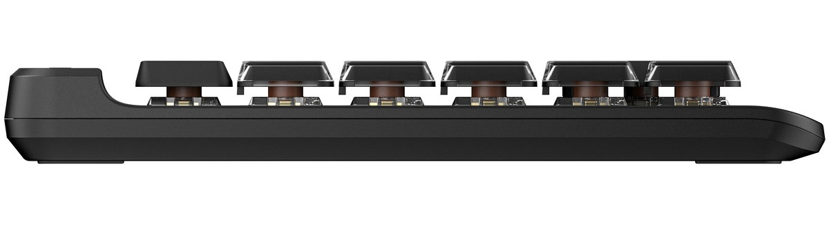 - Urządzenie wejściowe: 9 x przycisk programowalny, ruch klawiszy o niskim profilu, wymienne nasadki klawiszy z naklejkami