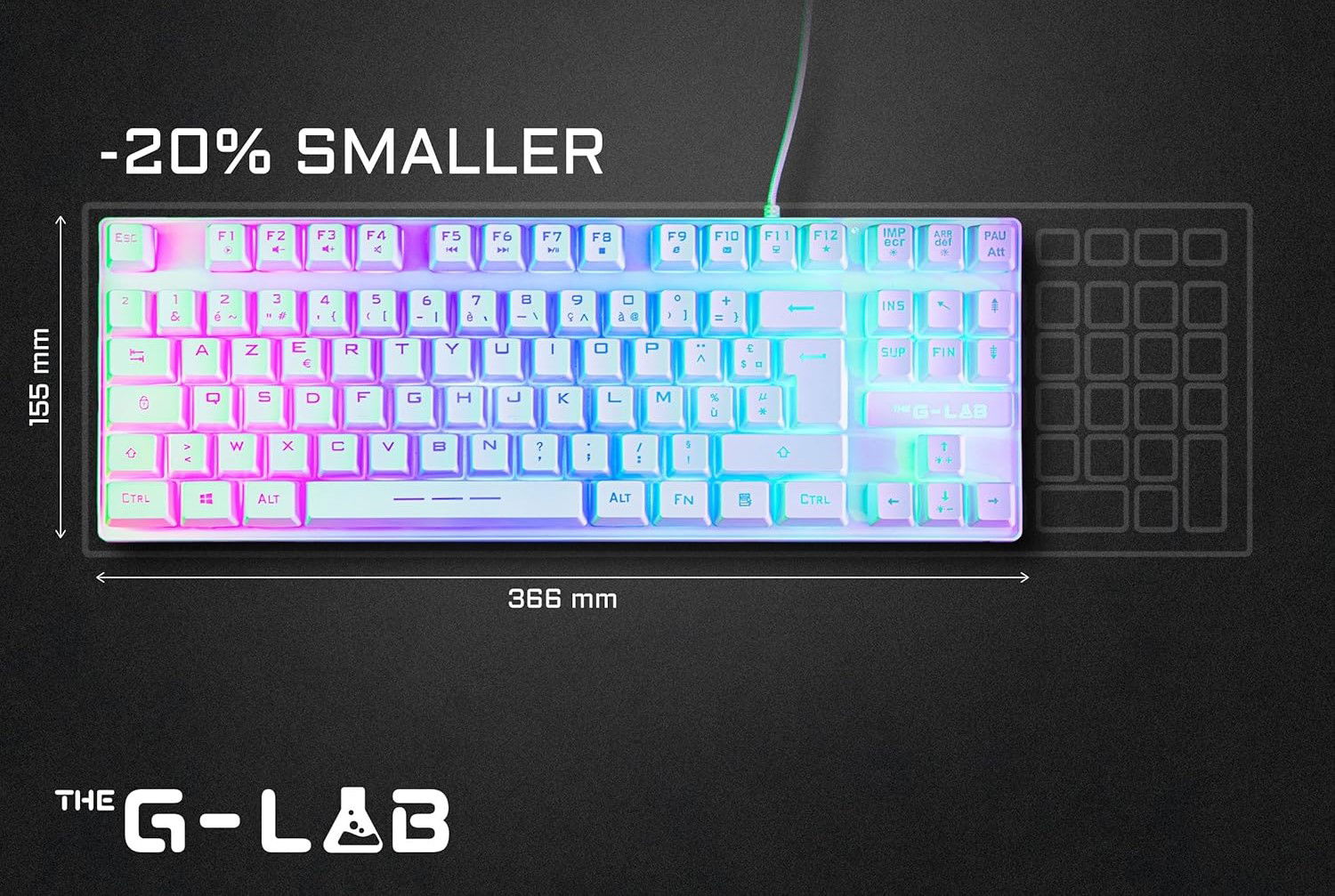 ✔️ Kompaktowy rozmiar – Keyz Caesium TKL ma wymiary 36,6 x 15,5 cm, co czyni ją o 20% mniejszą od tradycyjnych klawiatur gamingowych. Bez klawiatury numerycznej (87 klawiszy) zyskujesz więcej miejsca na biurku, co jest idealne dla graczy o niskiej czułości, którzy wykonują duże ruchy myszą, eliminując ryzyko uderzenia myszy o krawędź klawiatury.