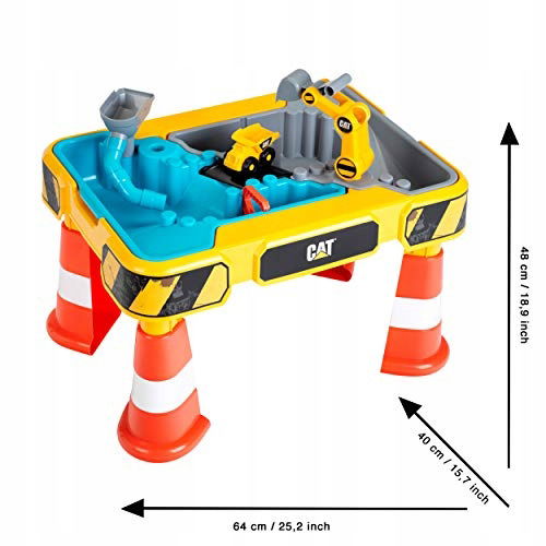 - Ten stolik do zabawy piaskiem i wodą CAT może służyć dzieciom do budowania tam i wykopywania rowów, ile tylko dusza zapragnie