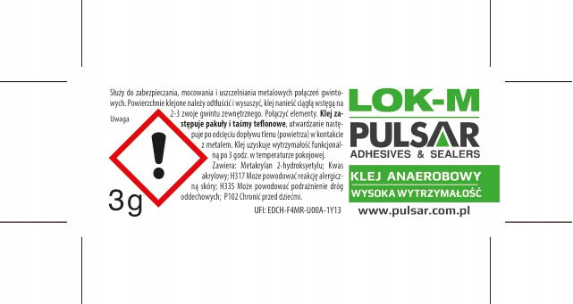 KLEJ DO GWINTÓW ŚRUB MOCNY PULSAR LOK-M ANAEROBOWY USZCZELNIA MOCUJE 3 g