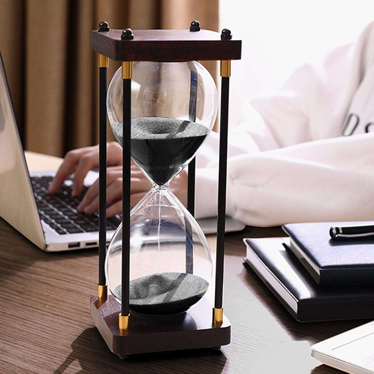 Klepsydra idealnie nadaje się do śledzenia czasu podczas pracy, sesji nauki, medytacji, a także do wprowadzenia spokoju do Twojej przestrzeni dzięki kojącemu efektowi przesypującego się piasku.