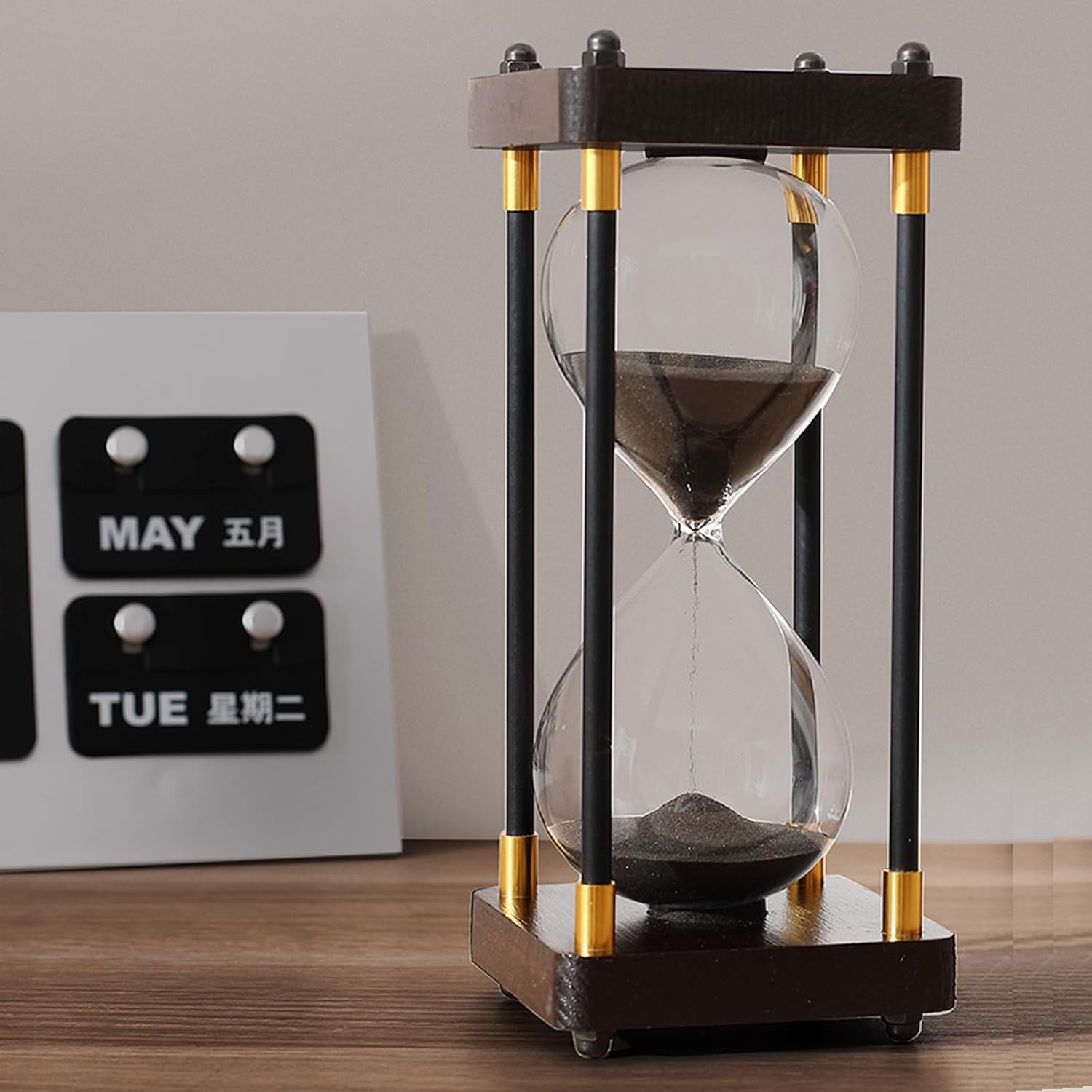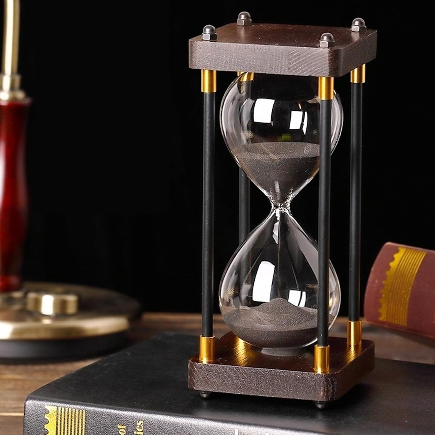 Klasyczna Klepsydra Drewniana 30 Minut z Metalowymi Elementami