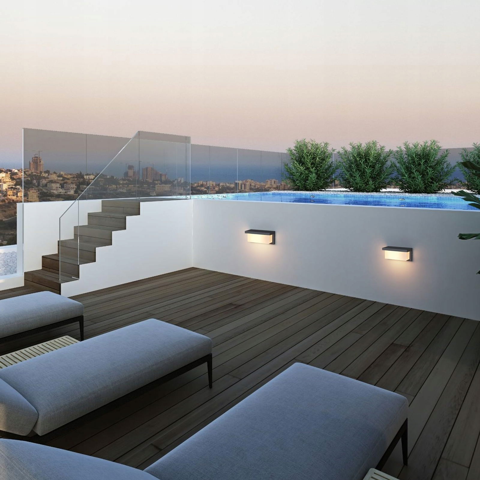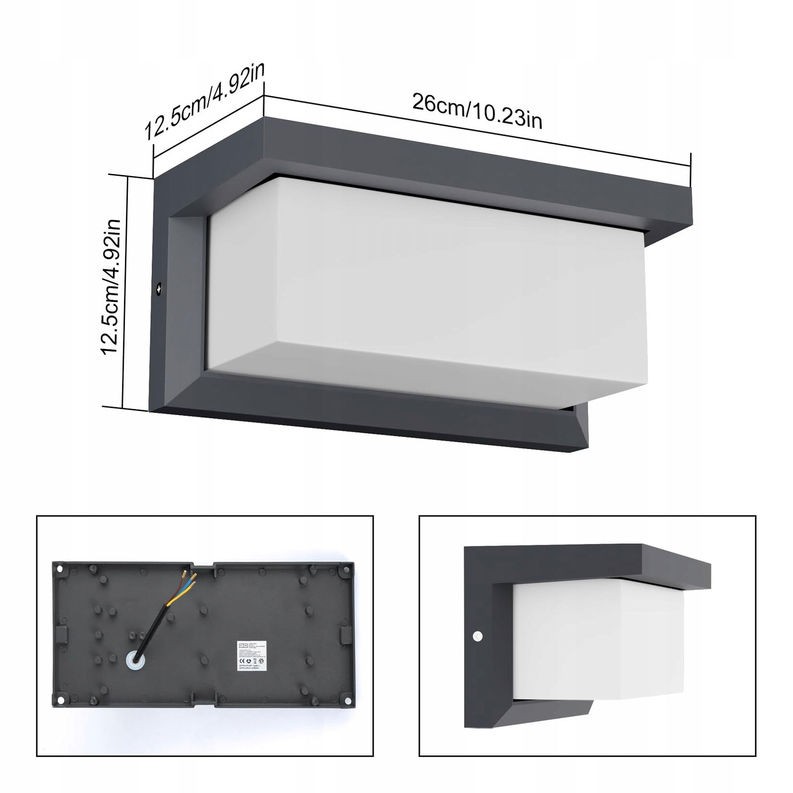 【Specyfikacja produktu】 Zewnętrzna lampa ścienna LED o wysokości 36 cm, wymiarach: 12,5 x 12,5 x 36 cm, mocy 24 W, ciepłej bieli 3000 K, 2 lampy ścienne w 1 opakowaniu.