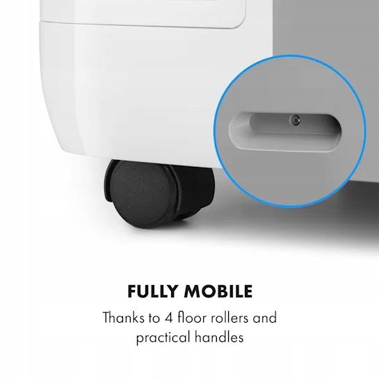Przesuwanie klimatyzatora jest niezwykle proste dzięki zintegrowanym, płynnie pracującym rolkom na spodzie.