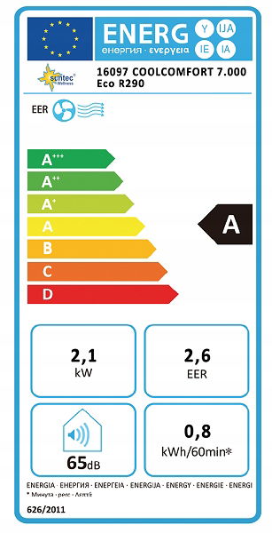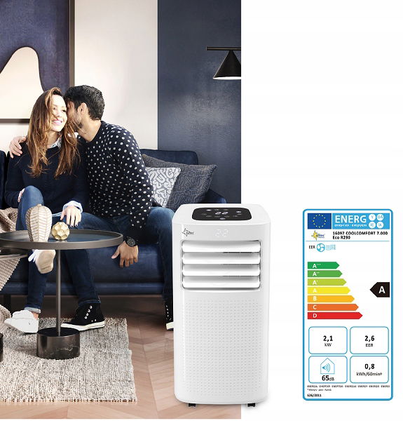 Wydajność chłodzenia 7 000 BTU/h przy 2100W, klasa efektywności energetycznej A