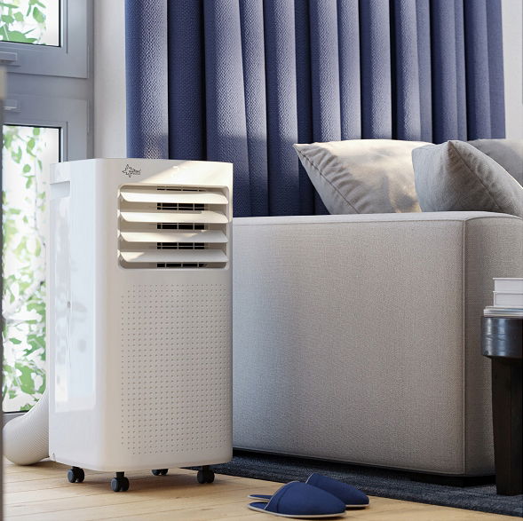 Przenośny klimatyzator Motion 2.0 Eco R290 może chłodzić, osuszać i wentylować.