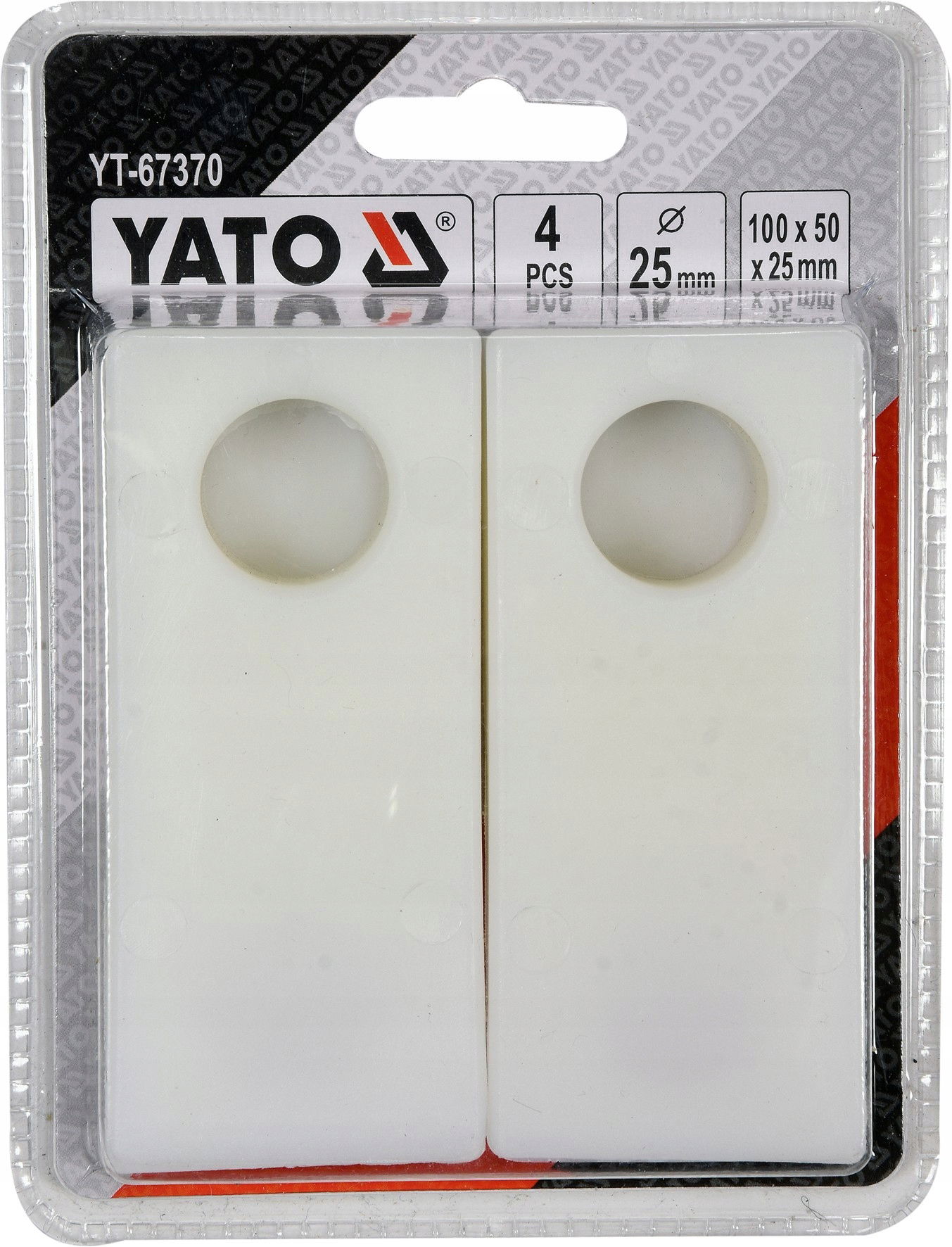 Kliny do prac montażowych lub demontaży , wykonane z twardego, odpornego na uszkodzenia mechaniczne plastiku /pp /. Wymiary 100 x 50 x 25 mm. W grubszej części posiadają przelotowy otwór o średnicy ok. 25 mm. Kolor biały w kpl 4 szt. Do prac montażowych lub demontaży np. części samochodowych takich jak listwy , tapicerka itp.