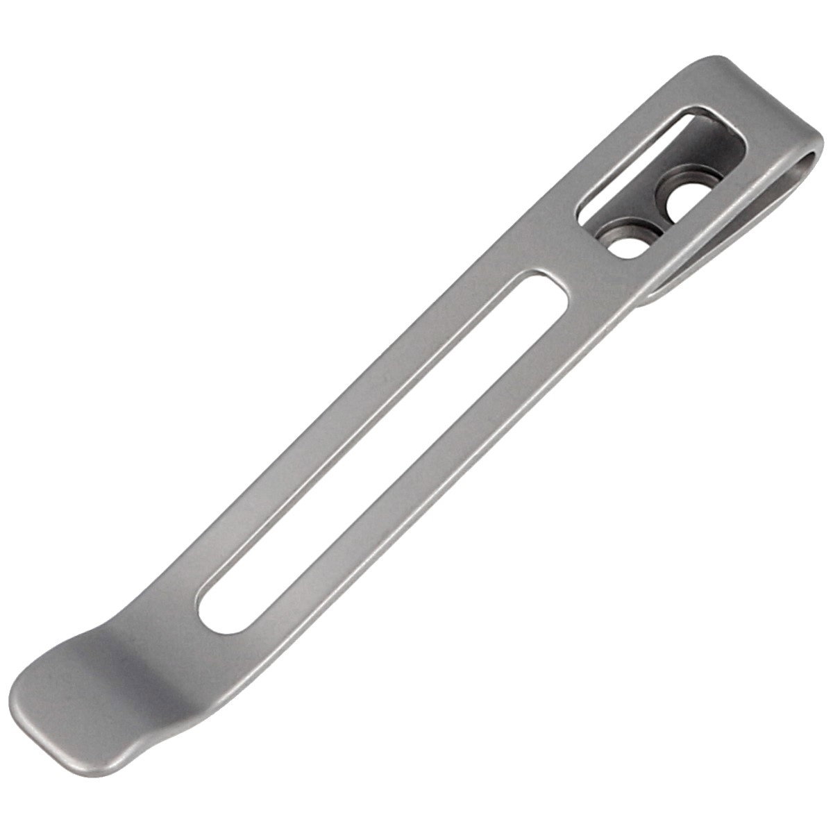CA-05B, klips typu deep carry z pogłębionymi otworami na śruby, wykonany ze stali nierdzewnej w kolorze srebrnym. Pasuje do noży WE i Civivi, do wszystkich modeli z odpowiednim rozstawem otworów mocujących. Rozmiar 50.0 mm x 6.8 mm.