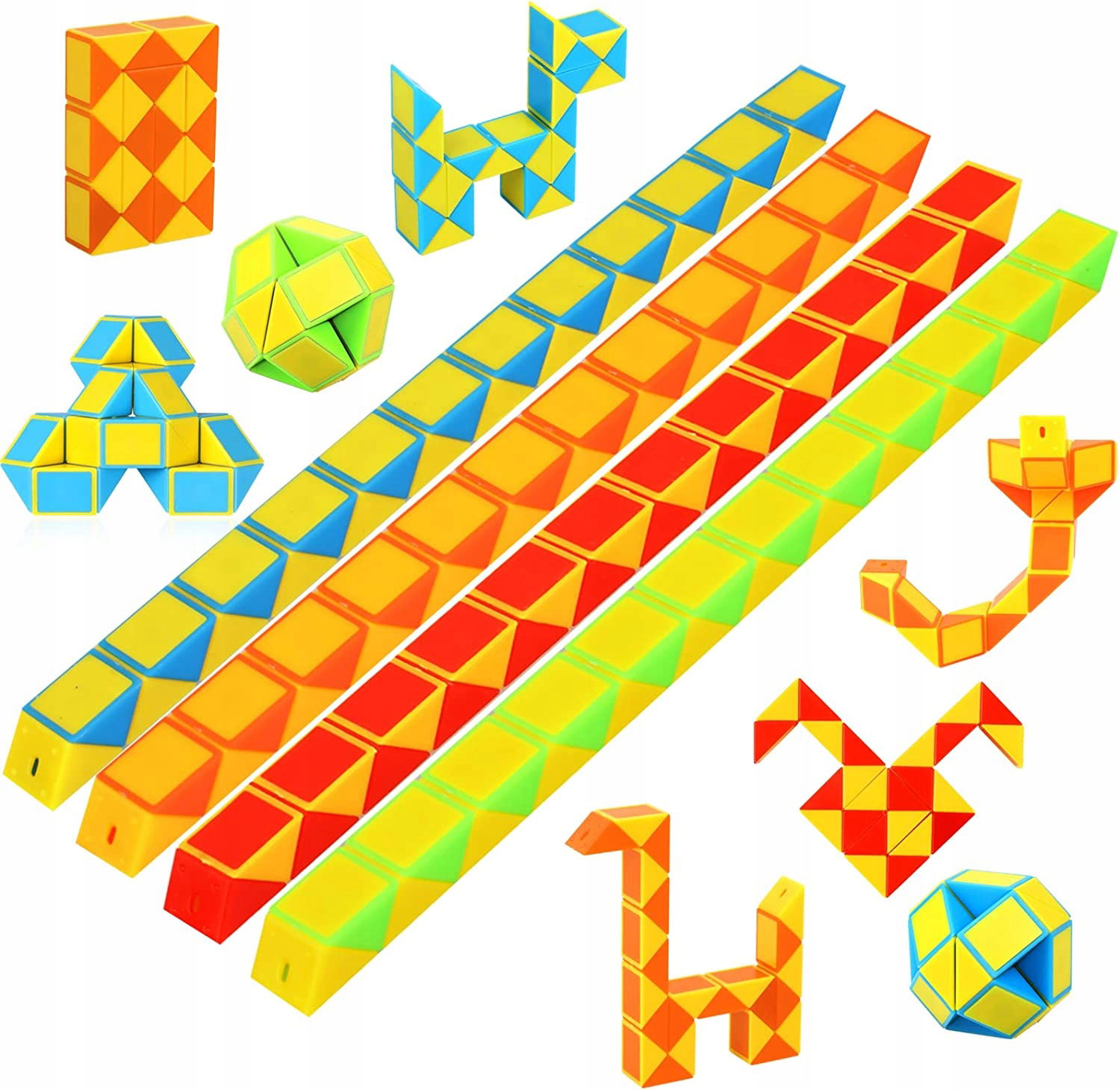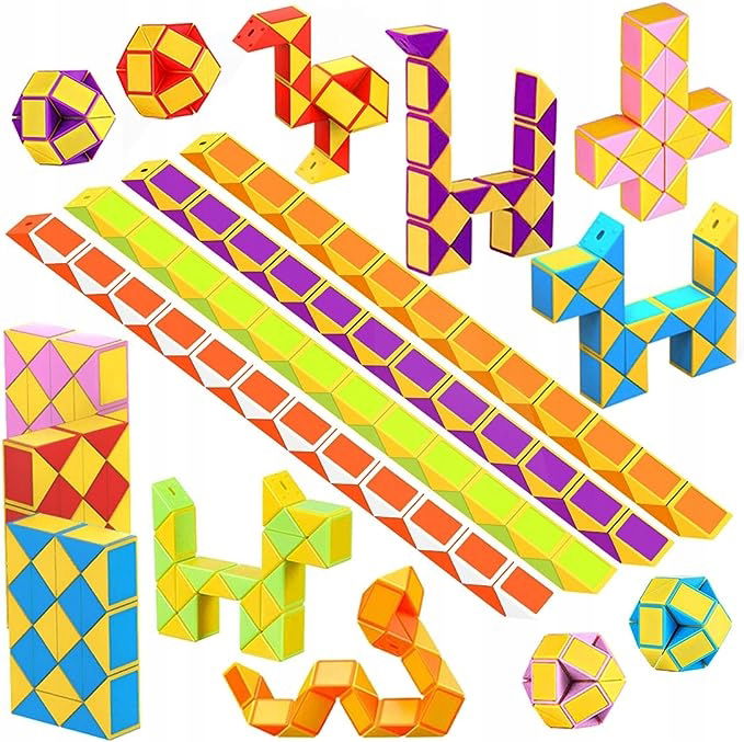 12-częściowy zestaw klocków Magic Snake: mogą bawić się zarówno dorośli, jak i dzieci. Magic Snake są wykonane z tworzywa sztucznego o gładkiej powierzchni. W opakowaniu klocki o różnych kolorach. Jest to zabawka edukacyjna, możesz nadać produktowi pożądany kształt, skręcając elementami, tworząc linie proste, schody i inne kształty. Zabawka może trenować praktyczne umiejętności dzieci, zwiększać koncentrację, poprawiać kreatywność i wzbogacać ich wyobraźnię. Magiczny wąż może być używany jako zabawka lub gadżet relaksacyjny – to doskonały produkt, gdy chcesz czymś zająć ręce.