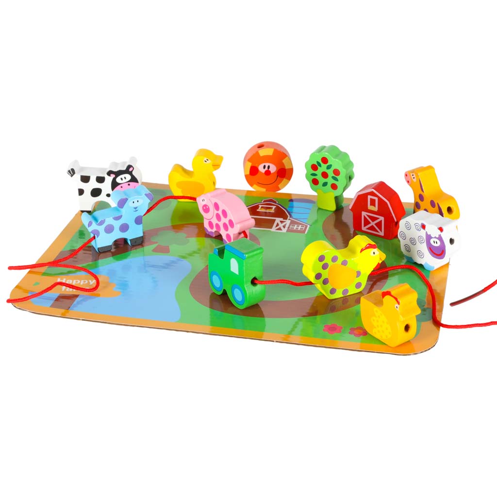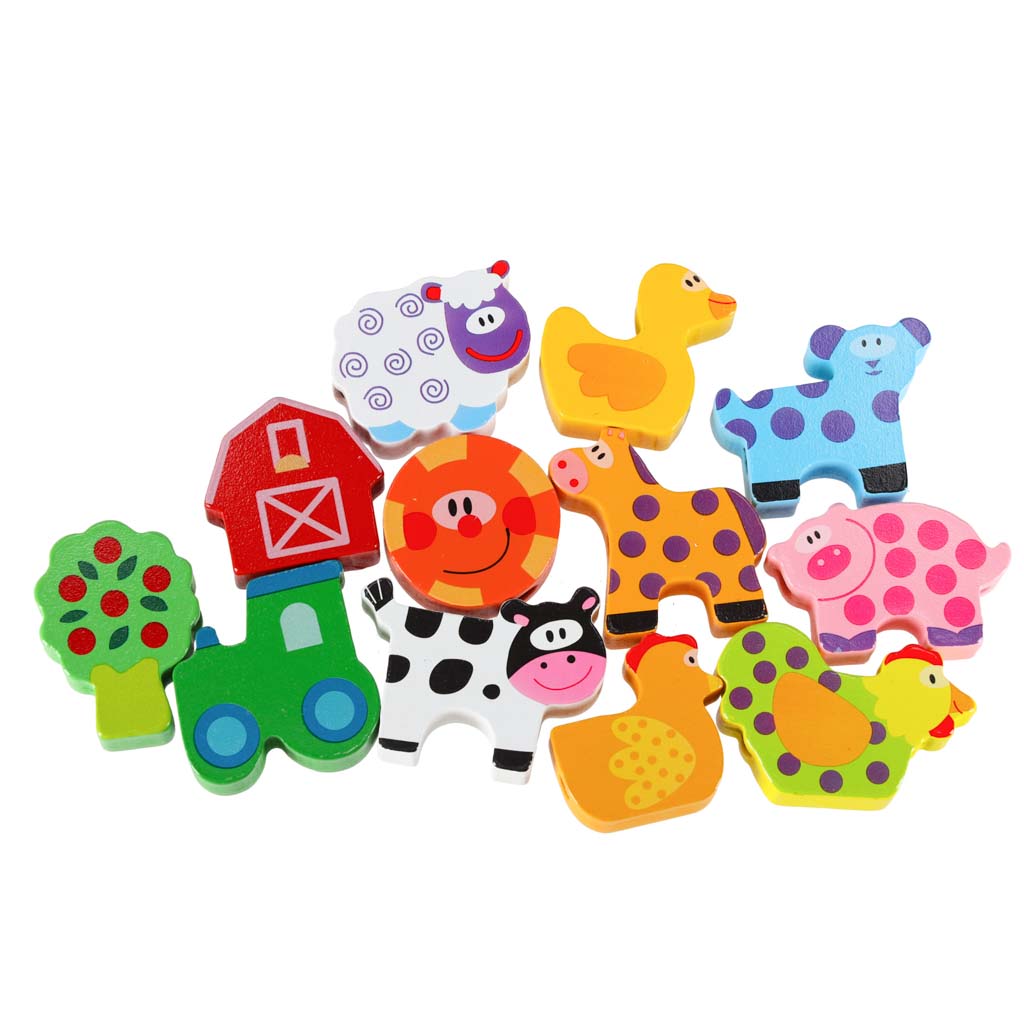 Klocki Drewniane Edukacyjne Montessori Nawlekane Przeplatanka Tablica Farma