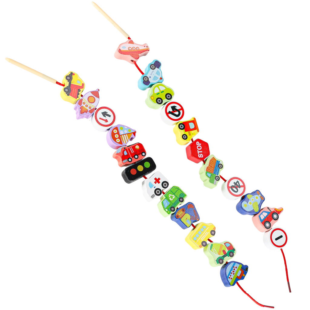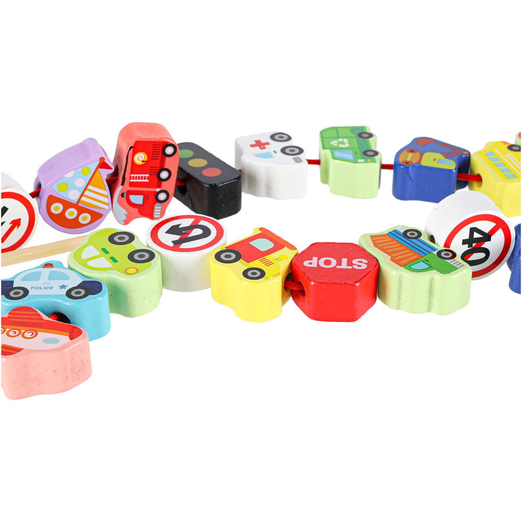 Klocki Drewniane Nawlekanka Przeplatanka Edukacyjna Pojazdy Znaki Drogowe