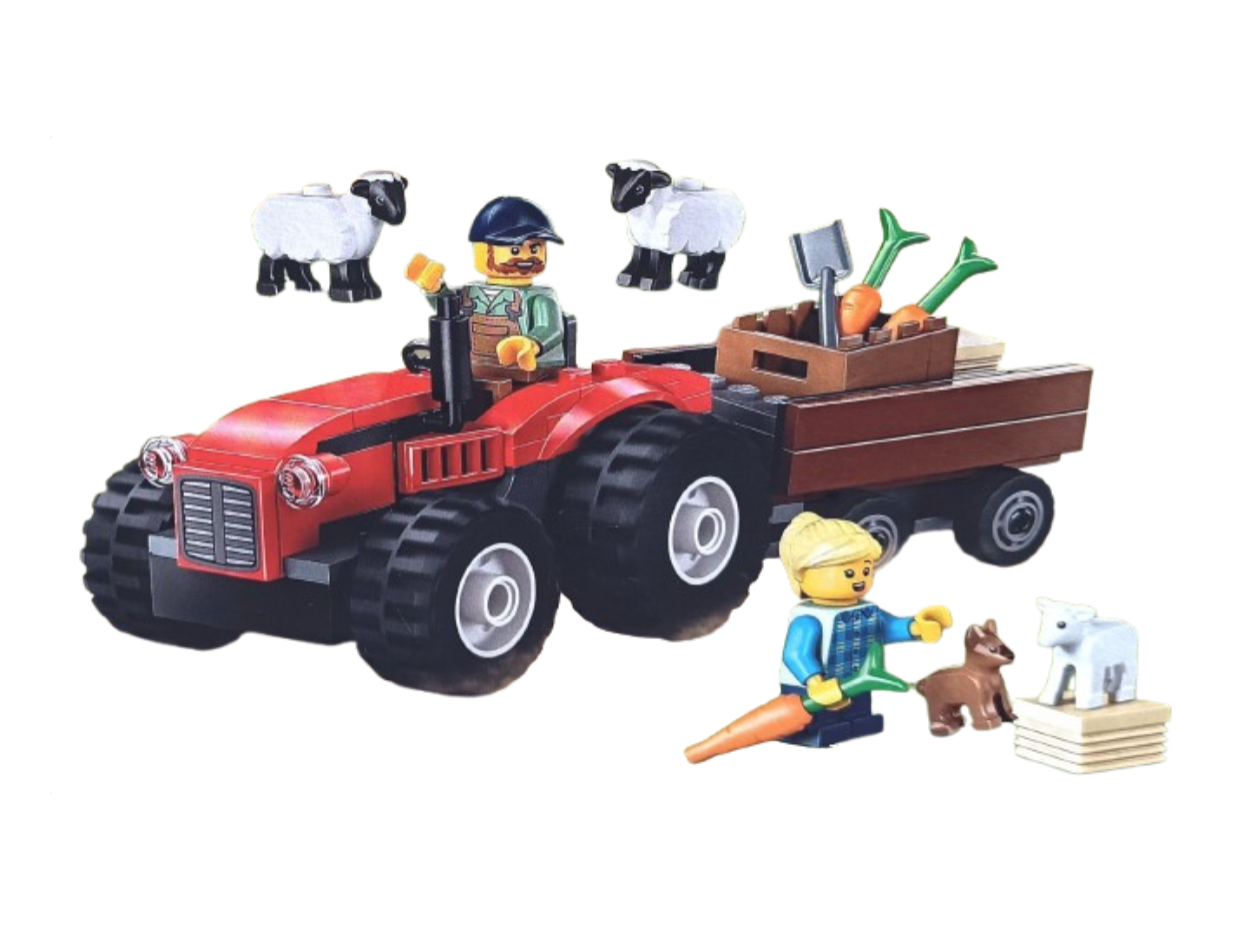 - Nazwa zestawu: Czerwony traktor z przyczepą i owcą