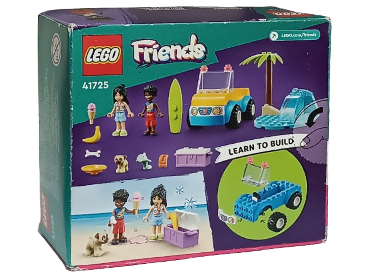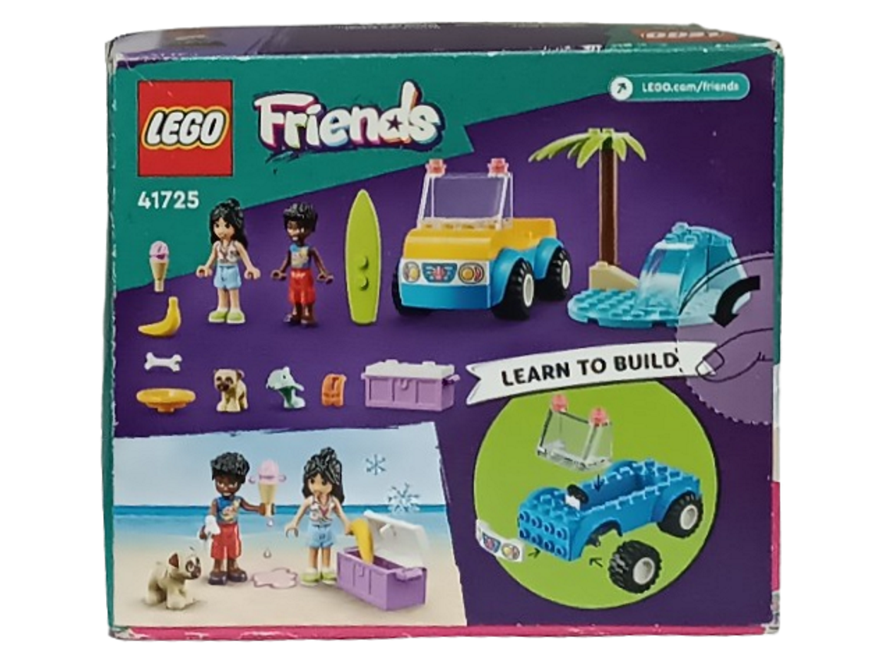 Klocki Lego Friends - Zabaw z łazikiem plażowym 41725, to klocki które zapewnią dziecku wiele godzin wspaniałej zabawy, a dodatkowo wpłyną pozytywnie na kreatywność, wyobraźnię i rozwój zdolności manualnych. Klocki są kompatybilne z innymi markowymi klockami. W skład zestawu wchodzą 2 figurki (Liann + Zac).