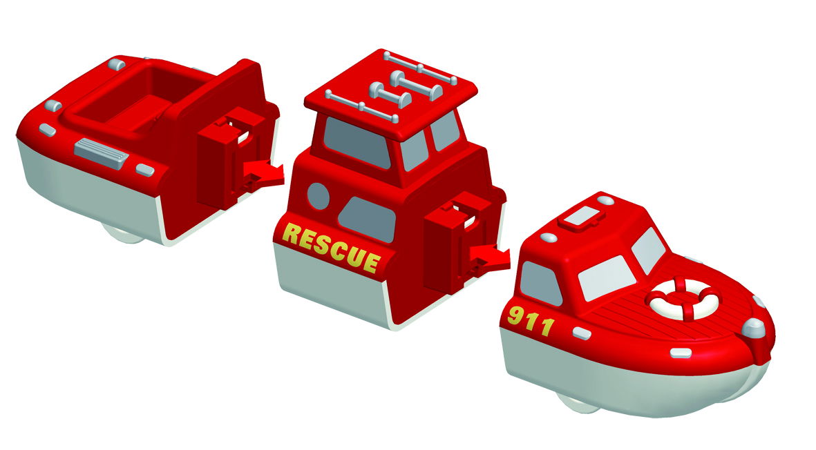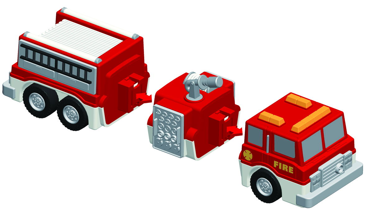 Zestaw składa się z 9 elementów łączonych dzięki wbudowanym magnesom (3 gotowych pojazdów), co pozwala na stworzenie ponad 100 różnych kombinacji w ramach zestawu. Opatentowany, innowacyjny system magnetyczno-zatrzaskowy pozwala na łatwe łączenie i rozłączanie poszczególnych modułów umożliwiając budowanie przeróżnych pojazdów strażackich. Każdy z pojazdów składa się z 3 elementów, jednak łącząc ze sobą moduły zestawu w różnej kolejności możemy zbudować auto ograniczone jedynie dziecięcą wyobraźnią. Przybliżony wymiar jednego autka (złożonego z 3 elementów) wynosi ok. 20 cm.
