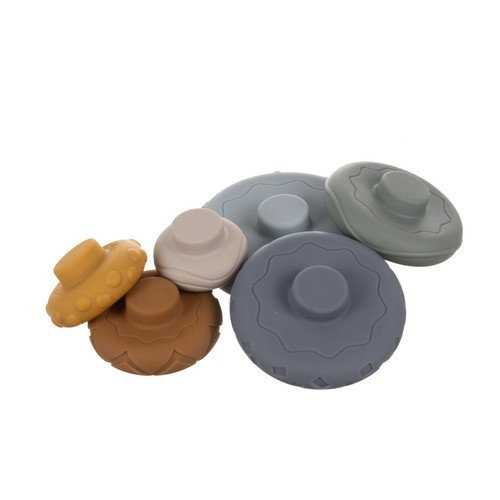 - WSZECHSTRONNOŚĆ - oprócz klocków, zestaw zawiera 6 sensorycznych krążków o różnej fakturze, kolorach i średnicy. Każdy krążek posiada wypukłości i wgłębienia, które zapewniają różnorodne wrażenia dotykowe, stymulując zmysł dotyku dziecka. Podobnie jak klocki, krążki wydają delikatny dźwięk piszczałki podczas ściskania, dzięki czemu angażują malucha na różne sposoby. Dzieci mogą budować wieże z krążków, co wymaga skupienia i precyzji, a na szczycie wieży mogą umieścić uroczego misia koalę. Dzięki temu zabawa z krążkami stymuluje rozwój koordynacji wzrokowo-słuchowej, motoryki małej oraz zdolności manualnych.