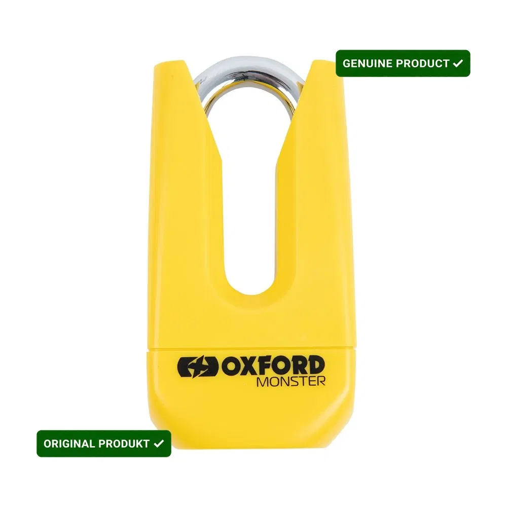 Zasady bezpieczeńśtwa i użytkowania: OXFORD ZABEZPIECZENIE ANTYKRADZIEŻOWE KŁÓDKA NA TARCZE HAMULCOWĄ MONSTER KOLOR ŻÓŁTY FLUO kod ean 5030009000362