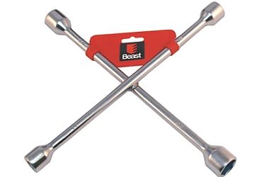 Klucz krzyżakowy do kół samochodowych. Praktyczny, pasujący do śrub w popularnych samochodach. Krzyżowa konstrukcja umożliwia skierowanie nacisku przez oba ramiona klucza, dzięki temu klucz nie ucieka na boki, kierując siłę na odkręcaną śrubę.