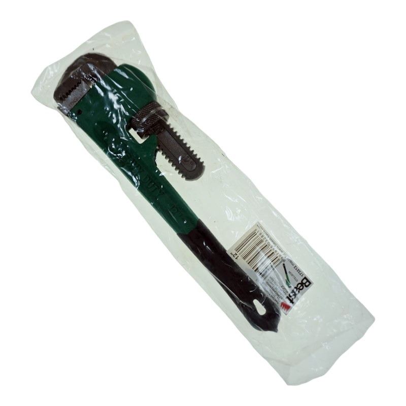 Klucz do skręcania rur posiada ząbkowane szczęki ułatwiające przyłapanie. Nadaje się do skręcania zarówno rur metalowych (żeliwnych) jak i tych z tworzywa. Wykonany solidnie - masywny, z rączką częściowo obitą dla wygodniejszego trzymania. Sposób użytkowania jest intuicyjny - wydłuża bądź skraca szczęki za pomocą pokrętła.