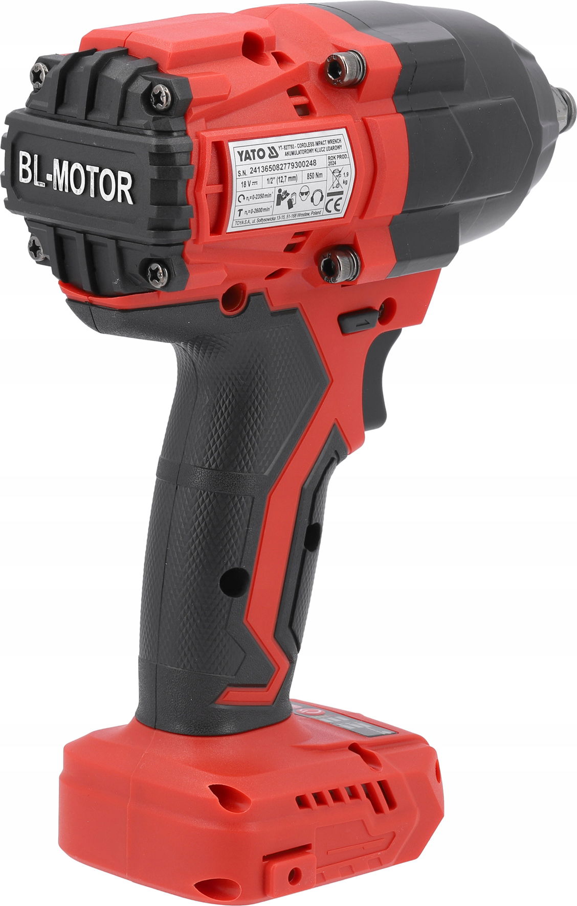 Bezszczotkowy klucz udarowy zasilany akumulatorem platformy YATO 18 V. Dzięki kompaktowym rozmiarom i momentowi obrotowemu 850 Nm sprawdzi się zarówno w warsztacie samochodowym, jak i na budowie. Niska waga umożliwia wygodną pracę kluczem uniesionym nad głową.