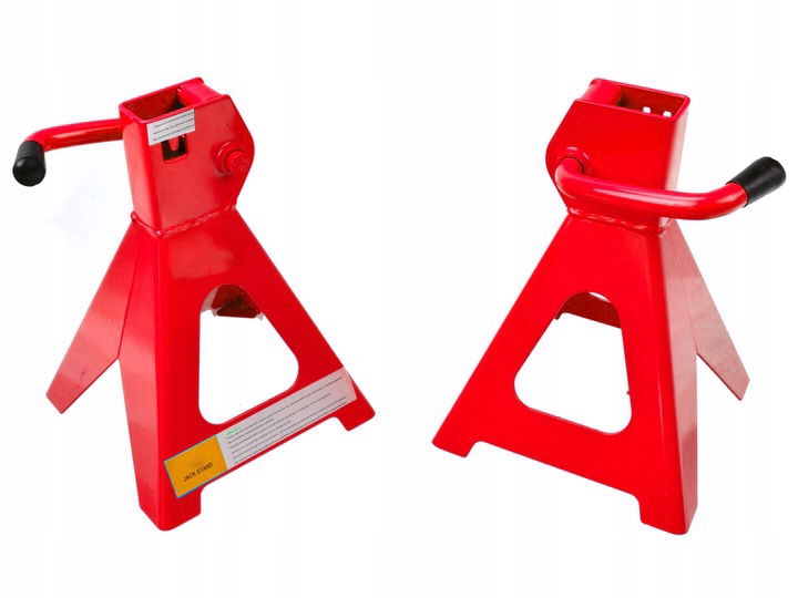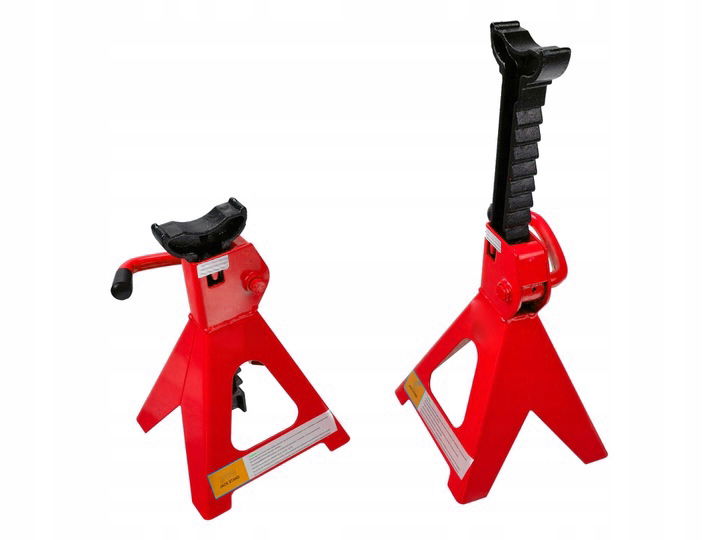 Podstawki zapewniają bezpieczne i stabilne podparcie auta na specjalnie wyprofilowanych siodełkach. Dźwignia blokująca skutecznie zabezpiecza kolumny podpór w wybranym położeniu. Wykonane są z wytrzymałej stali i charakteryzują się solidną, spawaną konstrukcją. Nogi podstawek posiadają przyspawane, szerokie stopki, stabilizujące kobyłki w trakcie pracy pod obciążeniem.