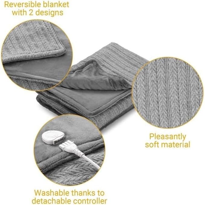 Wzór dzianiny: ciepło otuli Cię w chłodne pory roku. Nasz pluszowy koc grzewczy ma dwustronny, dwukolorowy wygląd. Z jednej strony powierzchnia dzianiny, a z drugiej miękka i aksamitna powierzchnia mikroplusza.