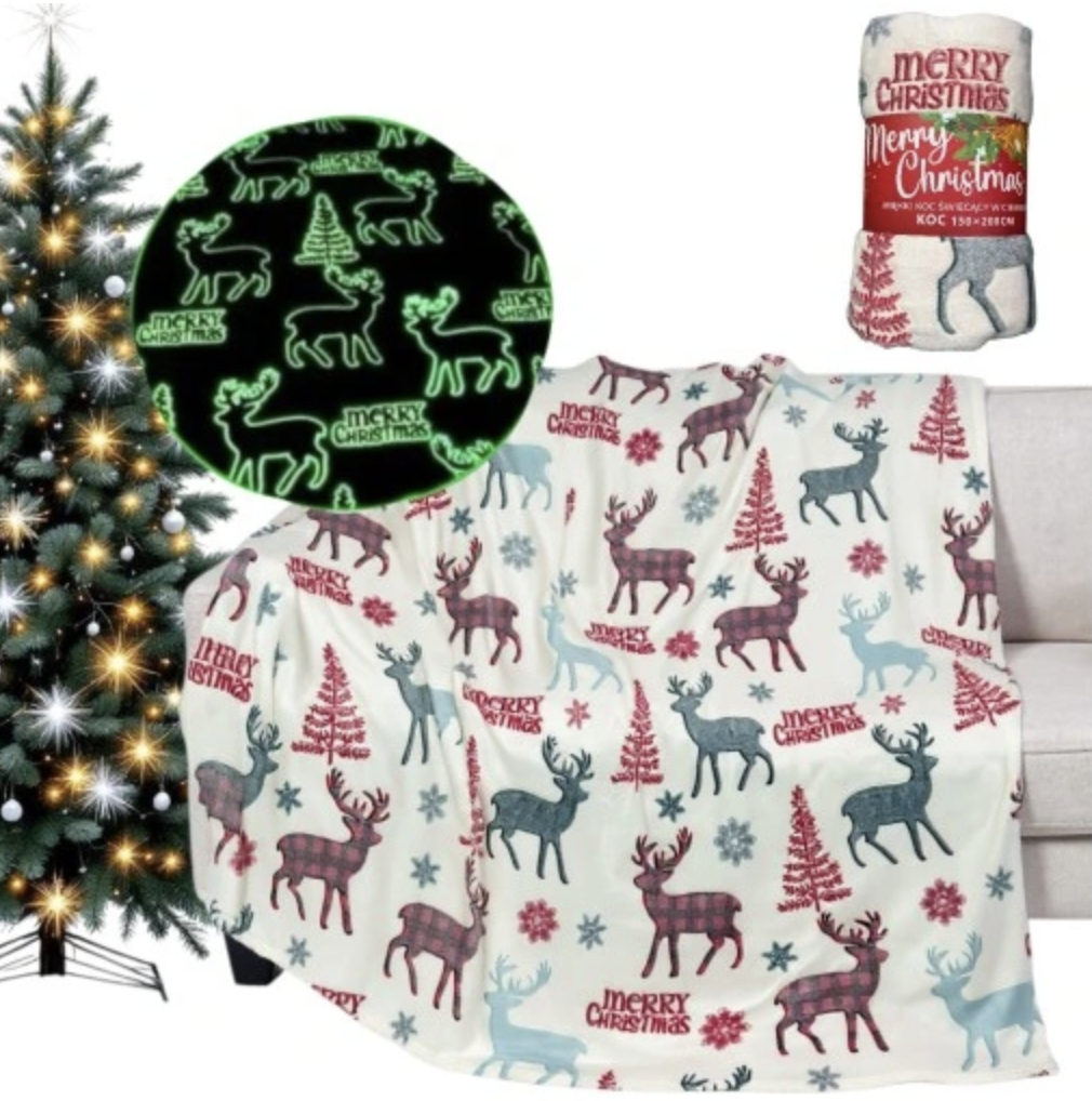 Otul się magicznie świecącym kocem. Ten świąteczny kocyk to źródło ciepła, komfortu i wyjątkowej atmosfery w nocy. Wykonany z miękkiego, delikatnego materiału, który jest przyjazny dla skóry, a jednocześnie trwały i łatwy w pielęgnacji.