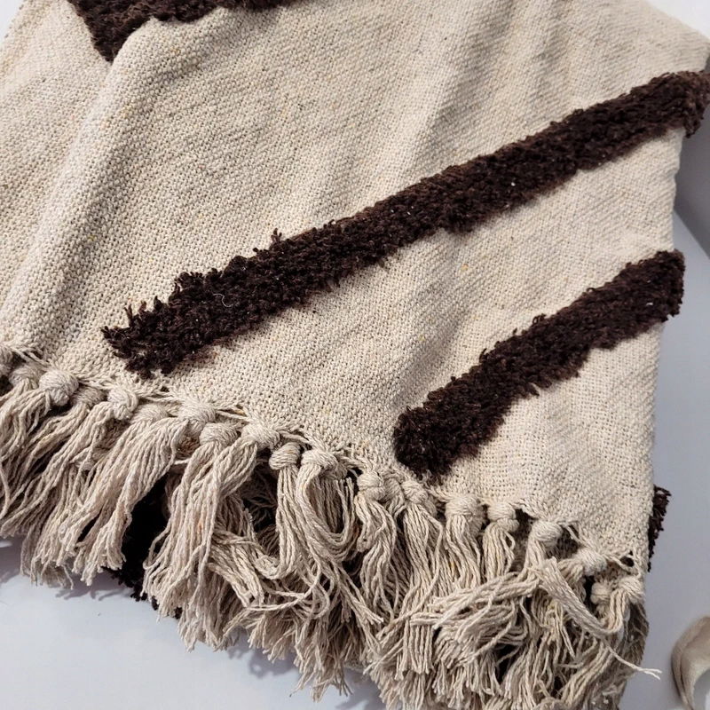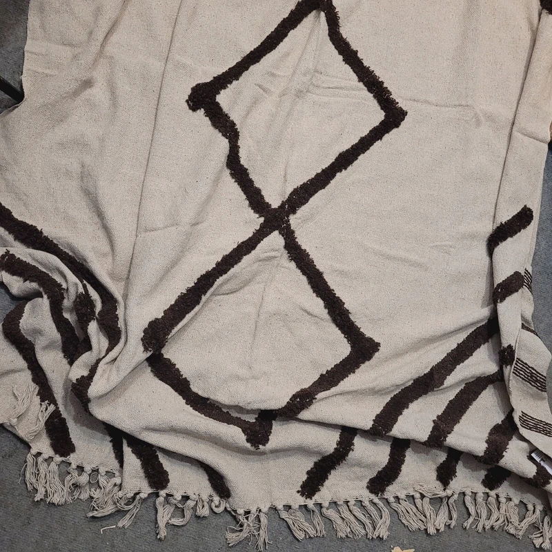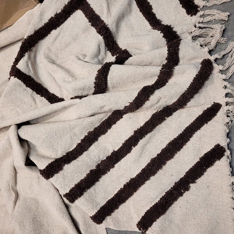 Koc - narzuta biało-brązowa - bawełna 130x160cm