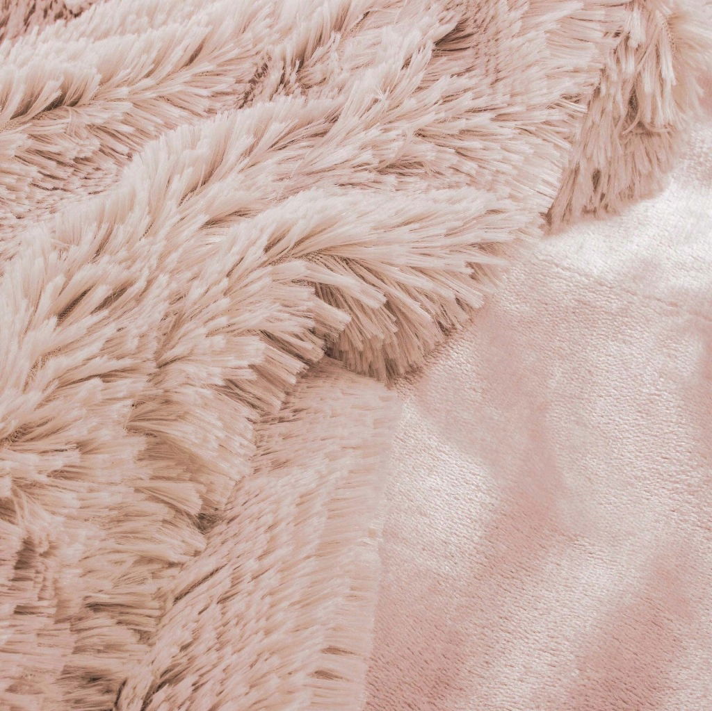 ✅Produkt ma charakter dwustronny. Jedna z nich to włochate futerko o ok. 2 cm długości włosia. Drugą stronę stanowi jednolity, miękki plusz. Każda ze stron prezentuje się na swój sposób efektownie, przez co koc może także pełnić funkcję narzuty na fotel, czy łóżko.