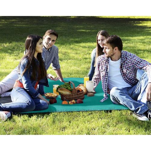 - WODOODPORNA – materiał z którego została wykonana mata to poliester. Dzięki temu nie przepuszcza ona i nie chłonie wody. Możesz wypoczywać na macie rozłożonej na mokrej trawie, czy wilgotnym piasku bez obawy o zamoczenie lub ubrudzenie odzieży.