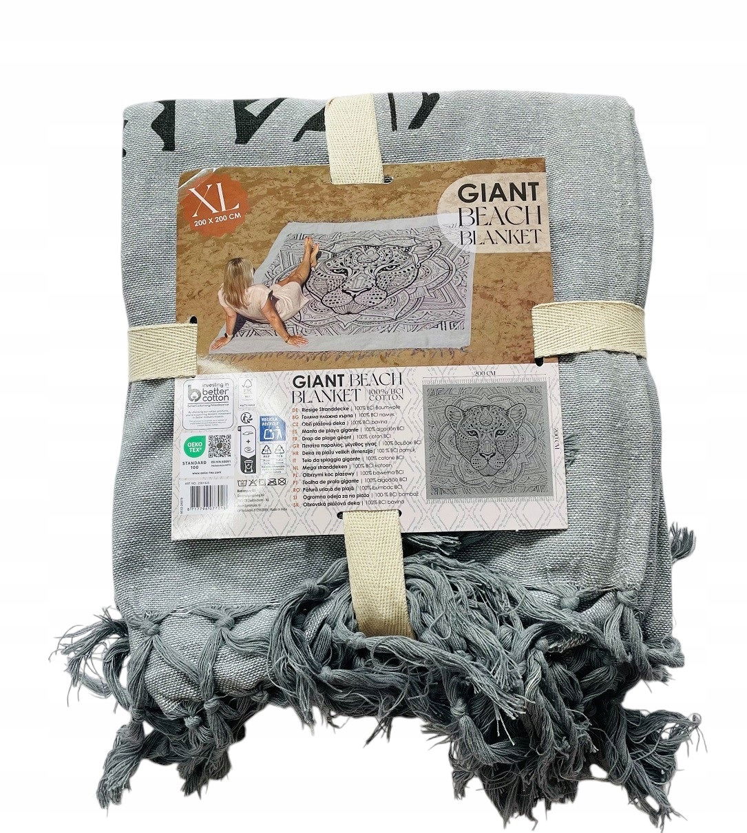 Koc Plażowy XXL 100% Bawełna Mandala TYGRYS GIANT BEACH BLANKET 200x200 cm