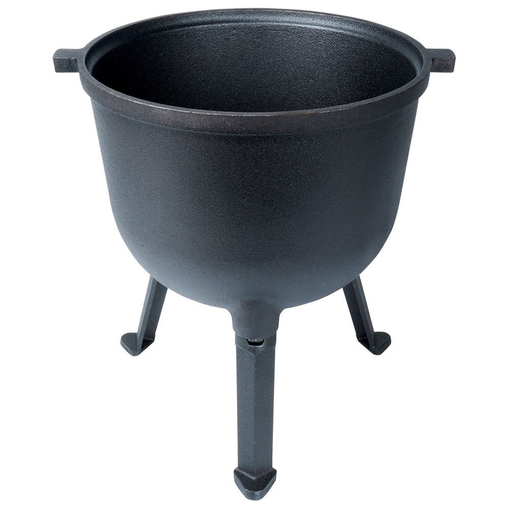 Okrągły kociołek żeliwny na nóżkach z pokrywką i uchwytem do zawieszenia. Idealny do gotowania, pieczenia, duszenia oraz smażenia potraw na ognisku, grillu lub nad otwartym ogniem. Potrawy przygotowane w kociołku będą soczyste i aromatyczne. Przydatny w trakcie różnego rodzaju spotkań, uroczystości czy imprez organizowanych na świeżym powietrzu.