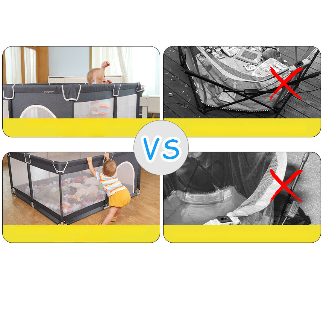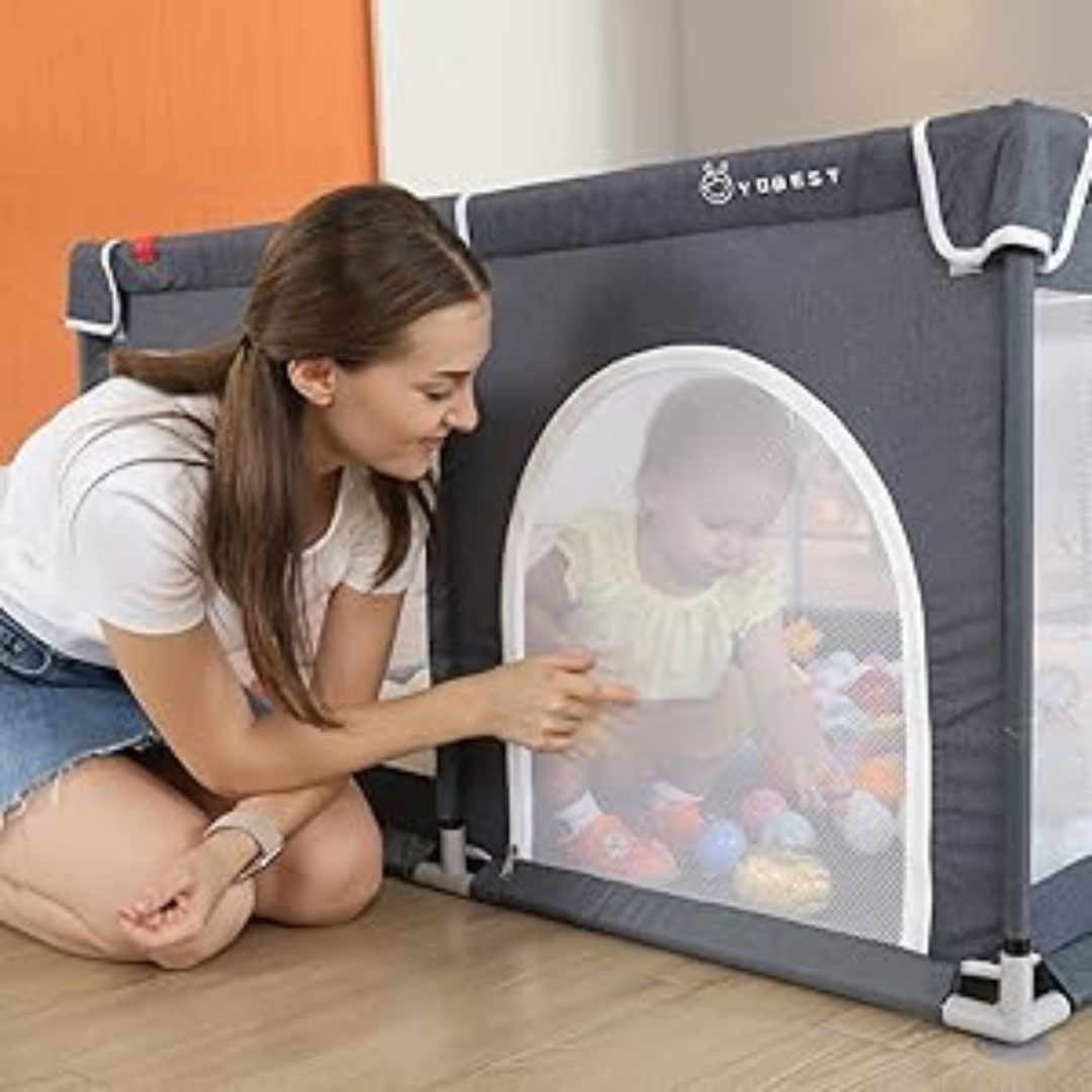 Kojec YOBEST zapewnia bezpieczną i przestronną przestrzeń do zabawy, raczkowania i nauki chodzenia.