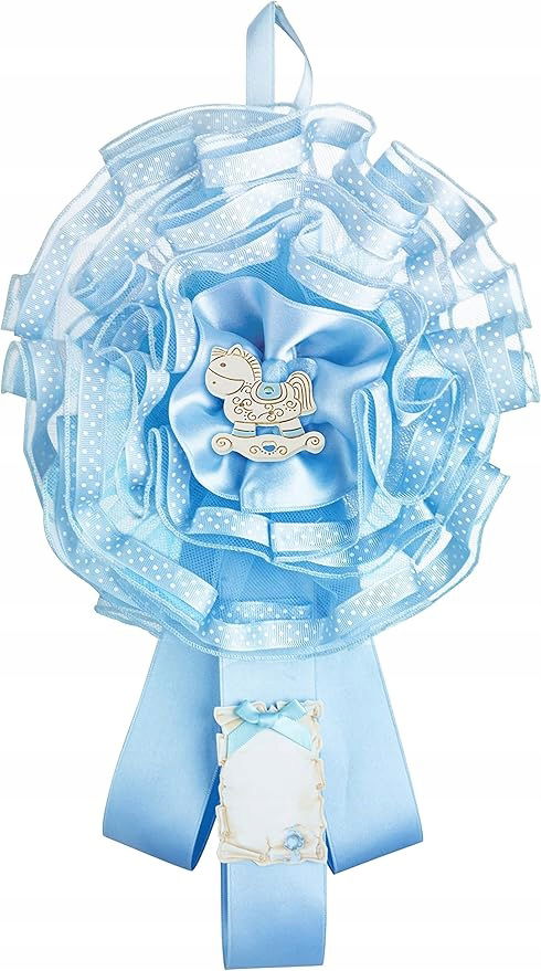 Przedstawiamy ekskluzywną kokardę narodzinową Mareli – piękną, włoską pamiątkę na powitanie noworodka. Delikatna, niebieska kokarda z ceramicznym konikiem na biegunach to wyjątkowy prezent, który uświetni pierwsze dni Twojego maluszka.