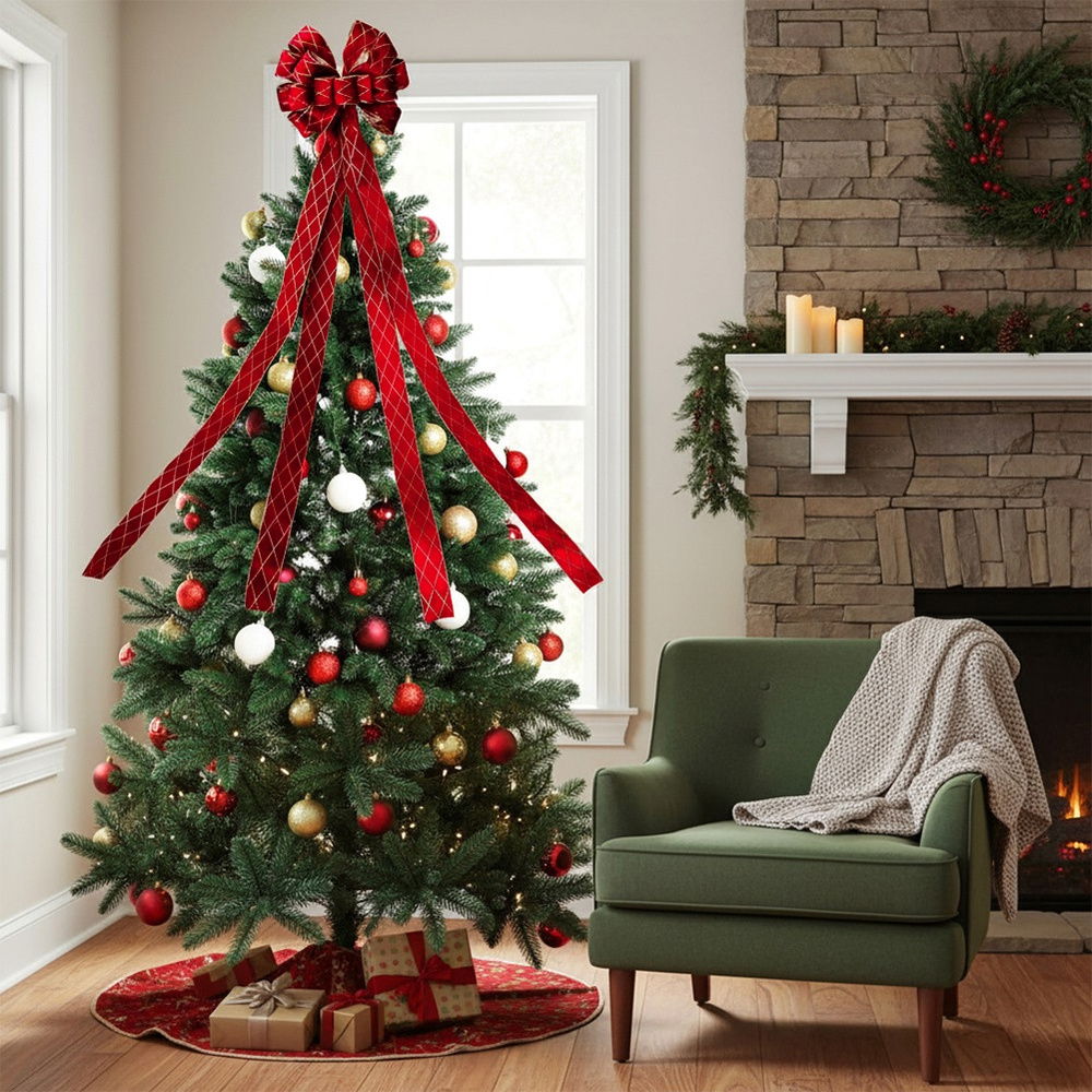 Wszechstronna dekoracja - Chociaż zaprojektowana z myślą o czubku choinki, kokarda doskonale sprawdzi się również jako ozdoba na drzwi wejściowe, poręcz schodów, kominek lub jako dekoracja dużego prezentu.