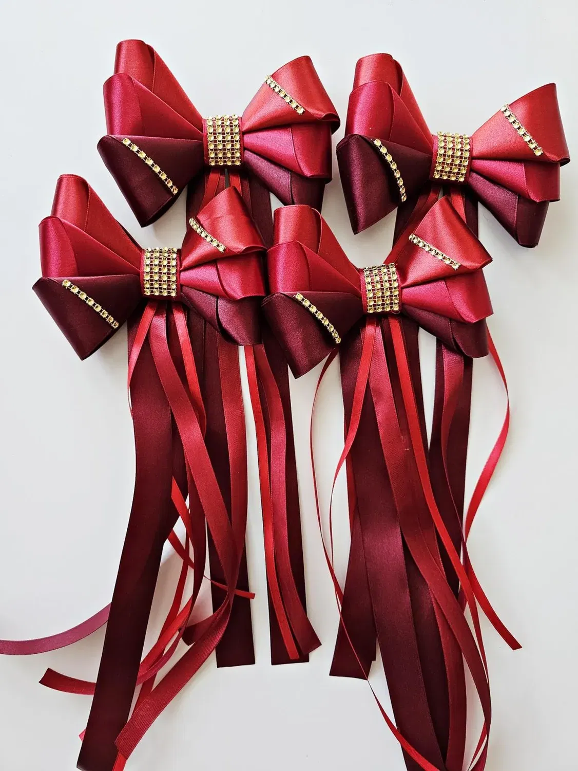 Są ręcznie szyte co daje im wyjątkowości. Cieszą się niezwykłym uznaniem wśród Par Młodych. Pasują do każdego typu klamki, mocowane za pomocą wstążeczek. Możliwość również dopięcia kwiatów poprzez wstążeczki, które są z tylnej strony kokardy.