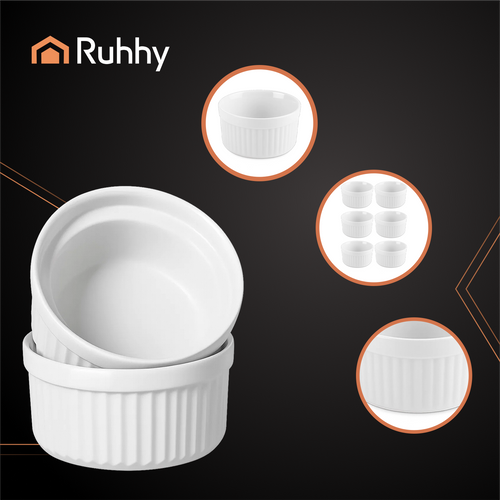 Zestaw 6 żaroodpornych kokilek RUHHY to idealne naczynia do zapiekanek, deserów i przystawek – pięknie prezentują się na stole i są wygodne w użytkowaniu. Wykonane z trwałej ceramiki, odpornej na wysokie temperatury, świetnie sprawdzą się zarówno w piekarniku, jak i mikrofali. Klasyczny design i praktyczny rozmiar czynią je niezastąpionym dodatkiem dla każdego miłośnika gotowania i eleganckiej prezentacji potraw.