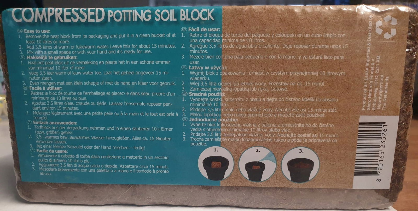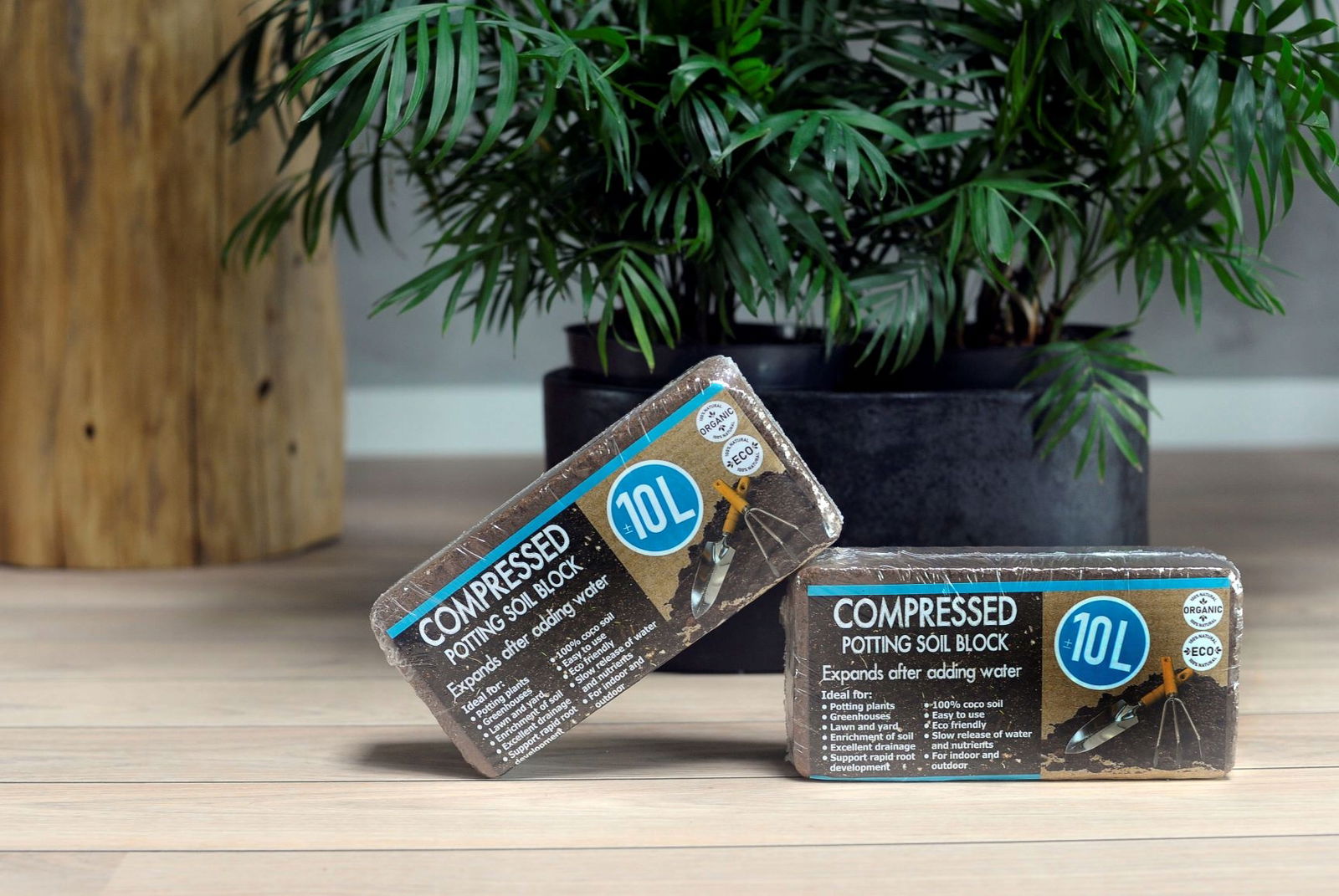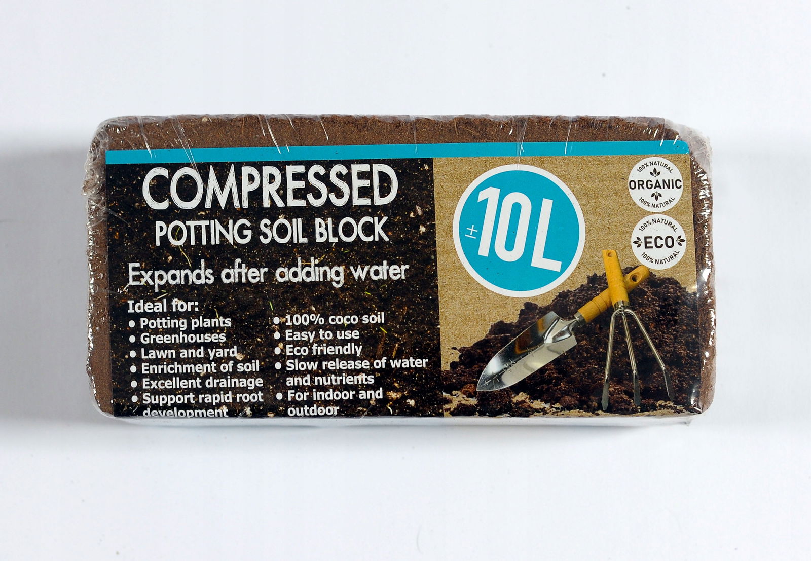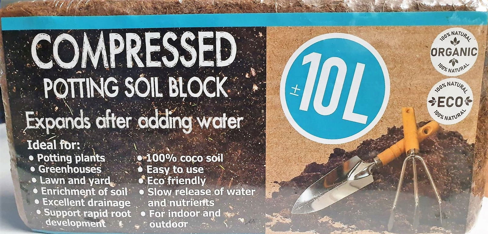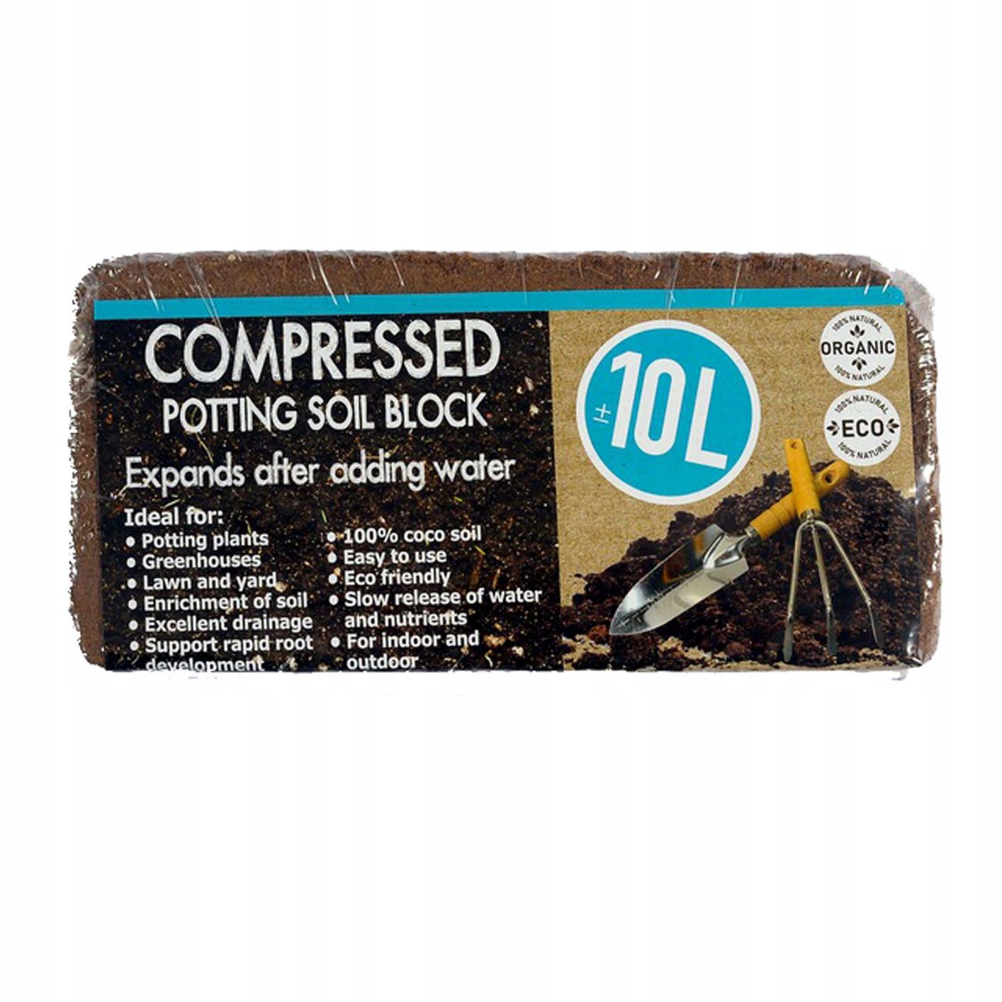 - COCO-PEAT rozpręży się w ciągu 15–20 minut zwiększając swoją objętość do ok. 10 litrów.