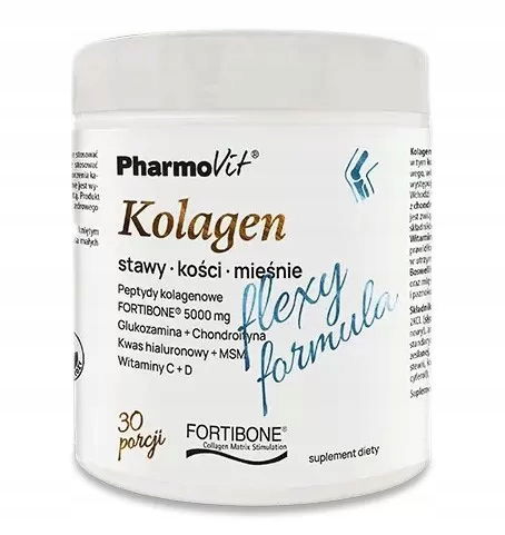 Kolagen Flexy Formula to suplement diety, będący kompozycją, aż dziesięciu składników aktywnych, w tym kolagenu FORTIBONE®, glukozaminy, chondroityny, kwasu hialuronowego, witamin i minerałów oraz ekstraktów roślinnych.