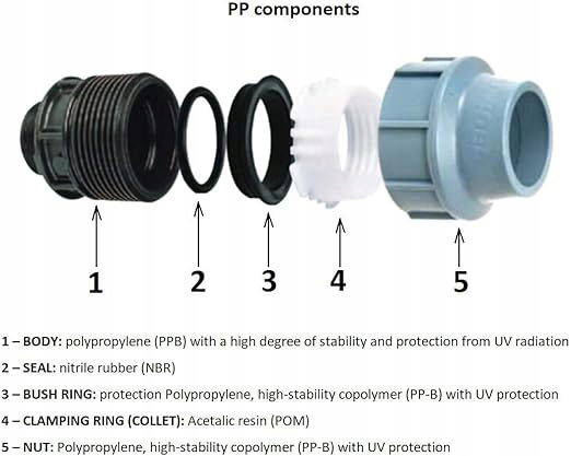 Łatwe łączenie rur wodociągowych PP z rurami i kształtkami wykonanymi z innych materiałów np.: Rury stalowe, inne złącza ocynkowane, mosiądz.