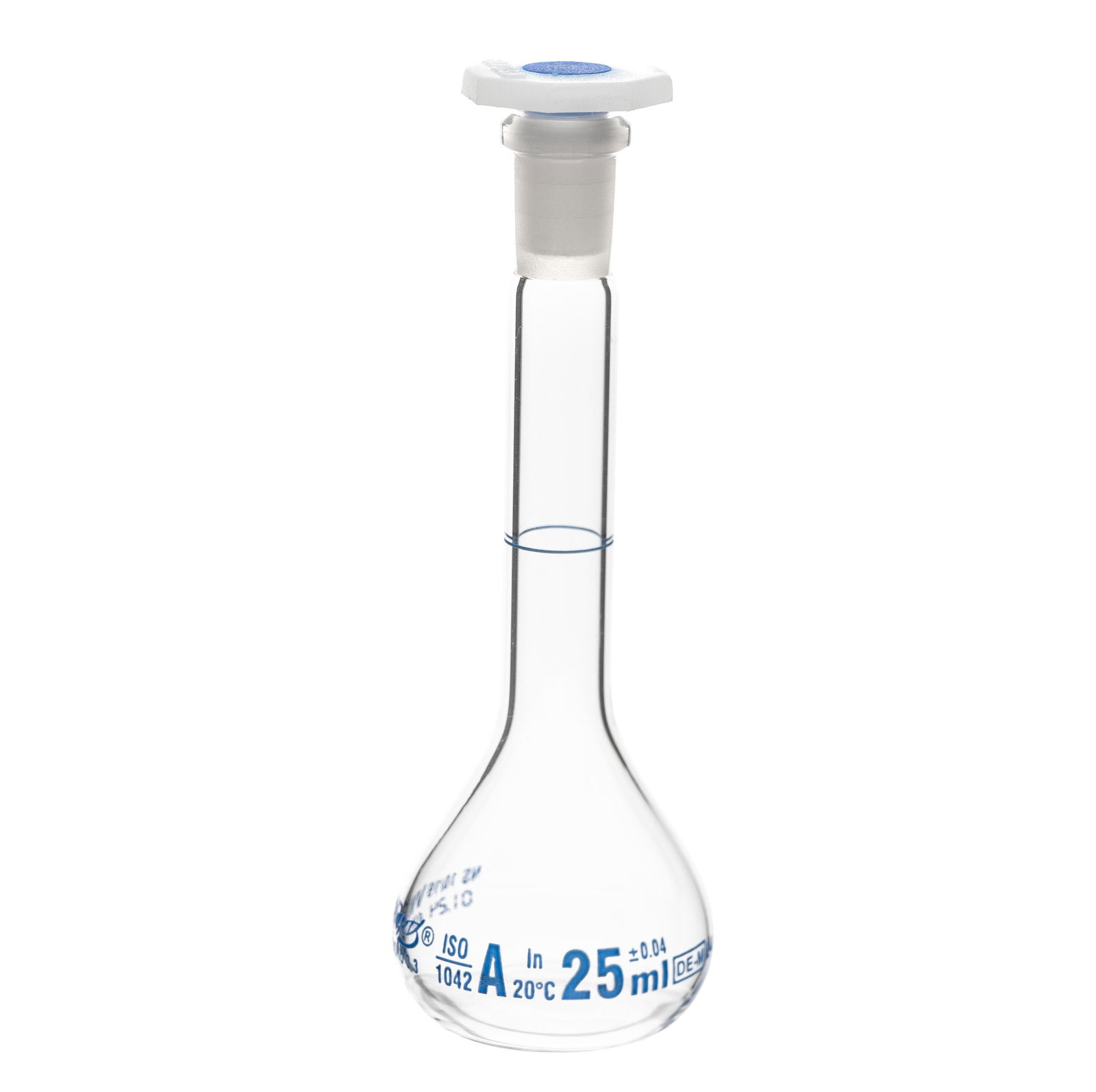Kolba miarowa boro 3.3 szklana 25 ml kl.A z korkiem szlif 10/19 certyfikat