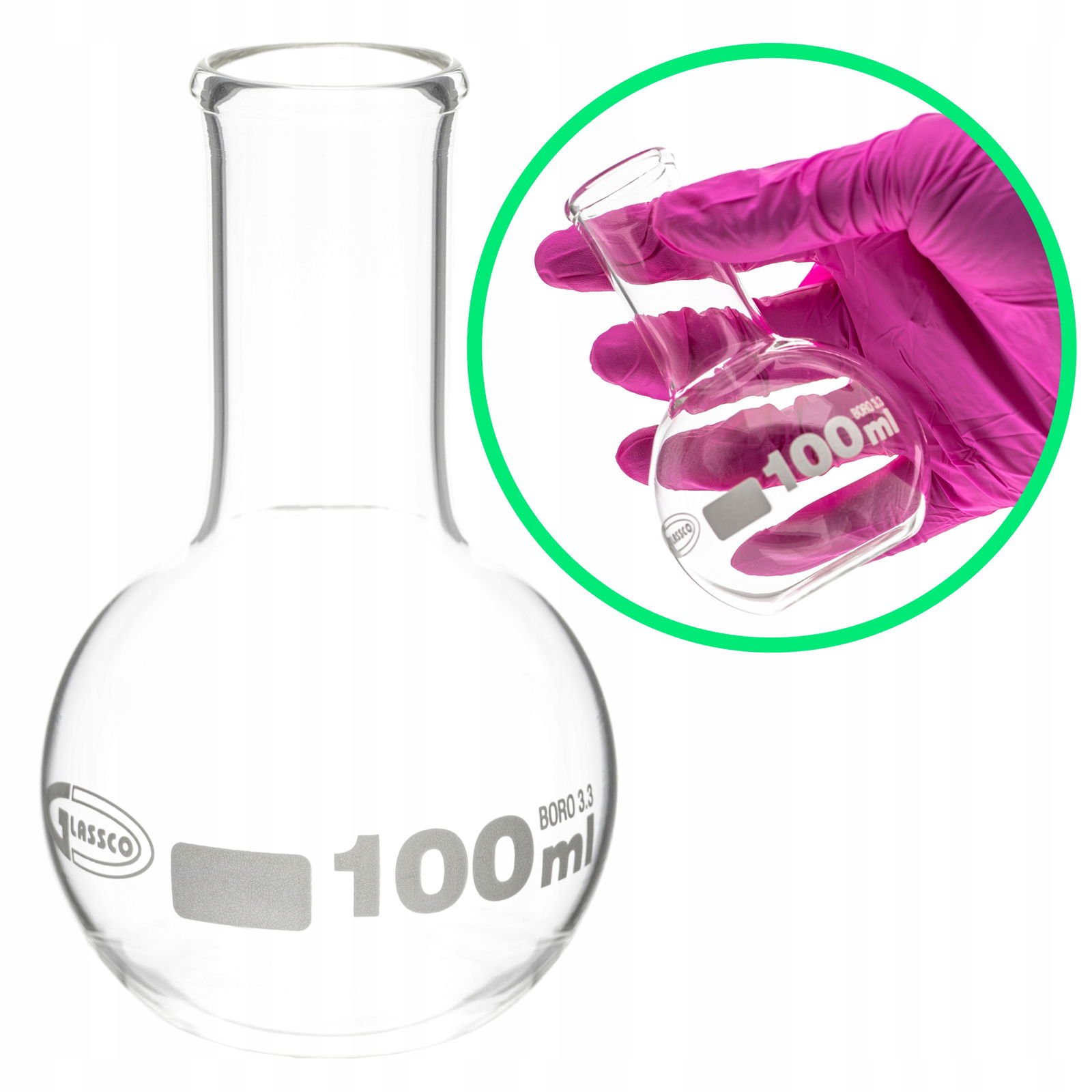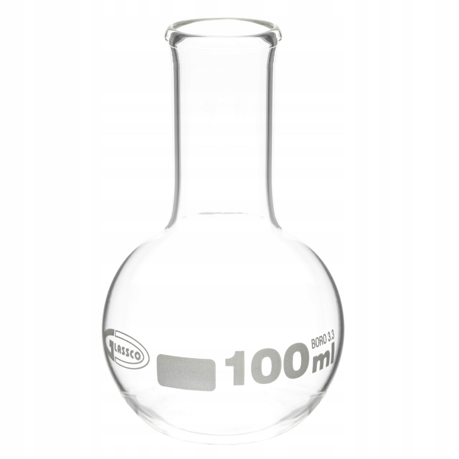 Kolba płaskodenna 100 ml szklana borokrzemowa 3.3 wąska szyjka wzmocniona