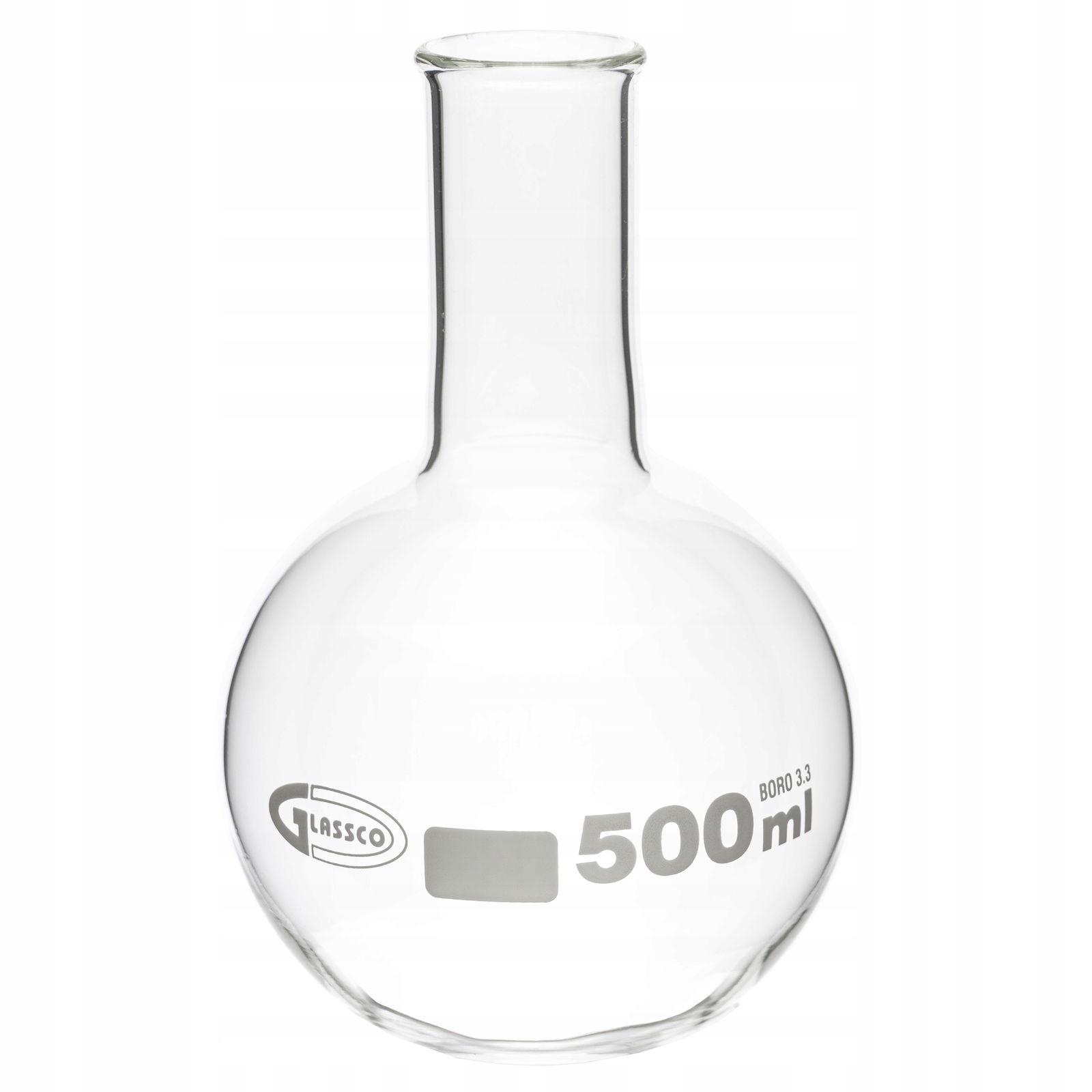 Kolba płaskodenna 500 ml szklana borokrzemowa 3.3 wąska szyjka wzmocniona
