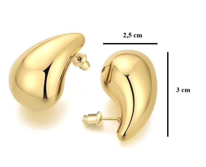 Kolczyki w kształcie łezek koloru złotego. Parametry: Kolor: złoty Zapięcie: sztyfty Opakowanie: woreczek strunowy