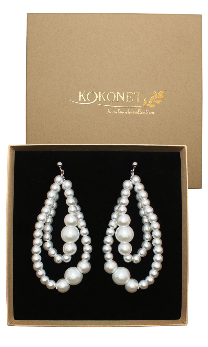 Kolczyki wykonane ręcznie ze stali nierdzewnej w towarzystwie pereł szklanych, zapakowane w eleganckie pudełko