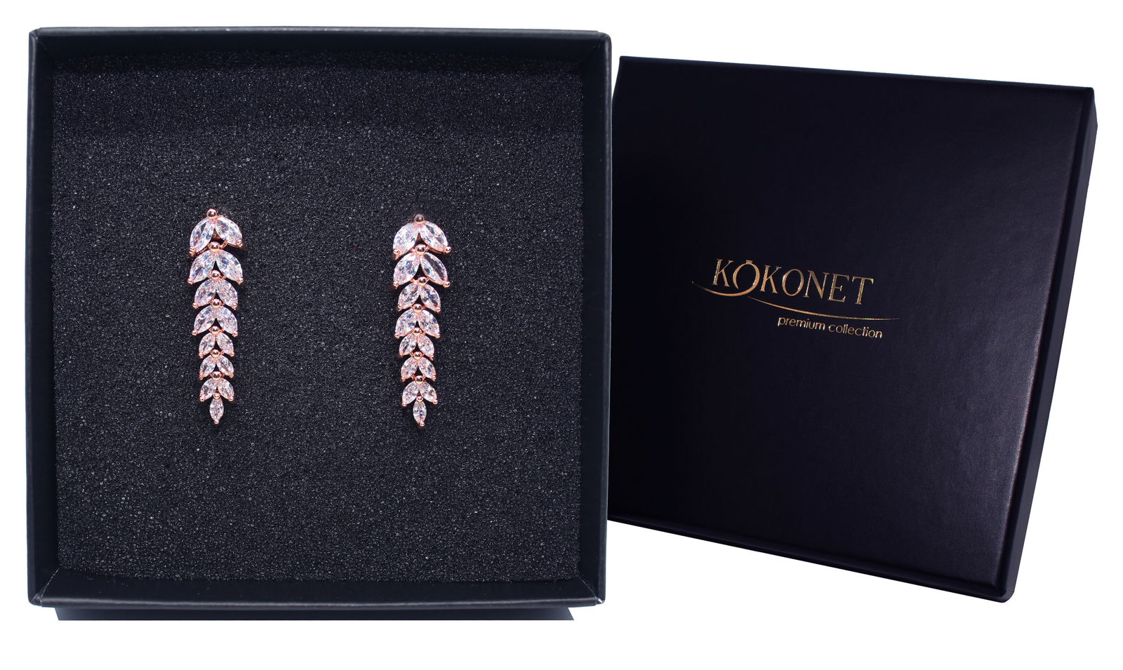 KOLCZYKI listeczki różowe złoto cyrkonie Wesele